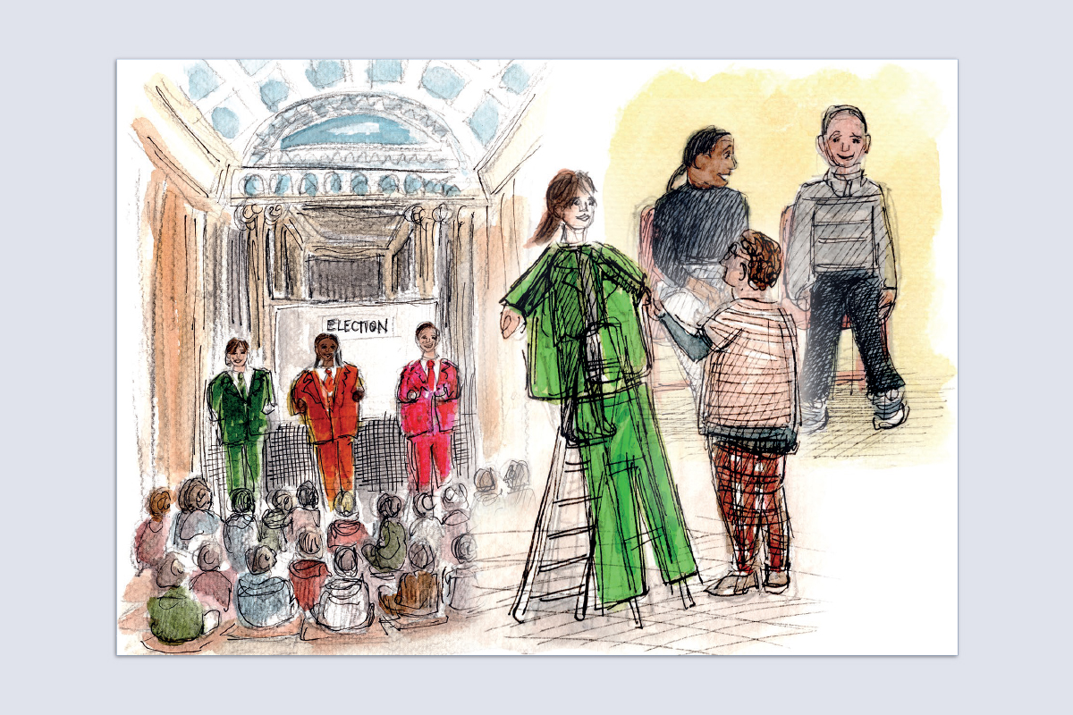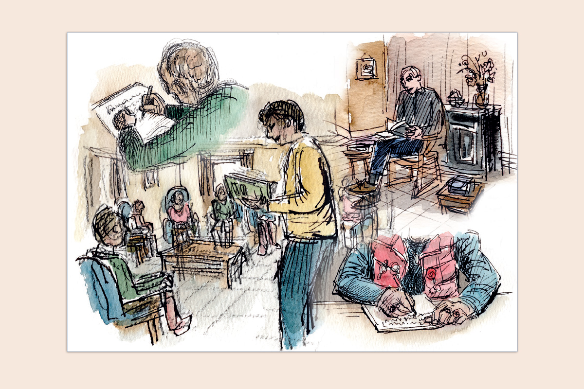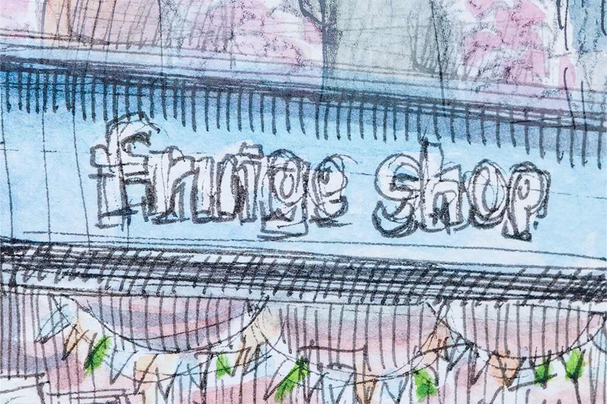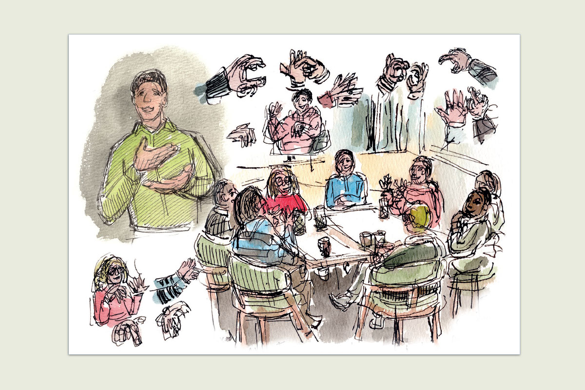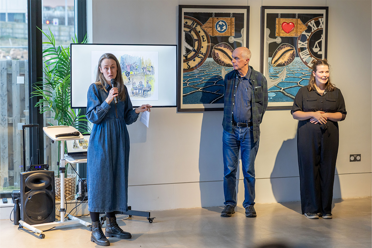 Working with each group, he captured their projects through a series of sketches, which were transformed into postcards for the participants to share their own stories and experiences.