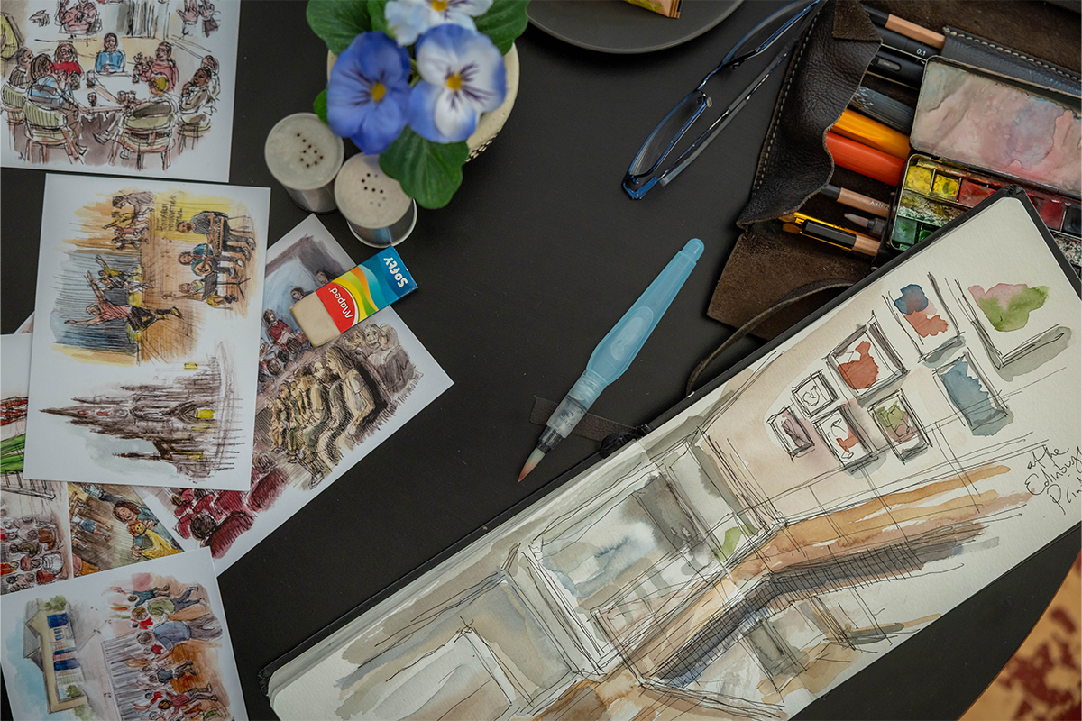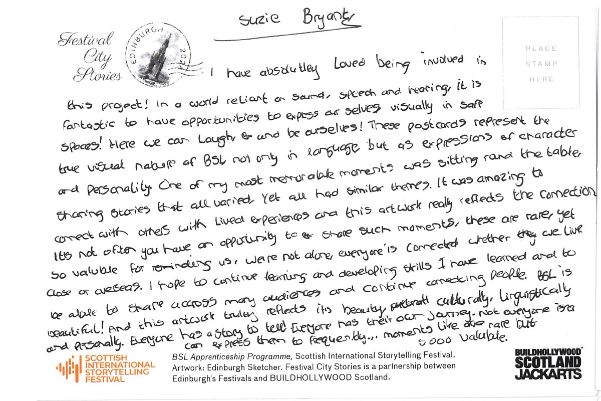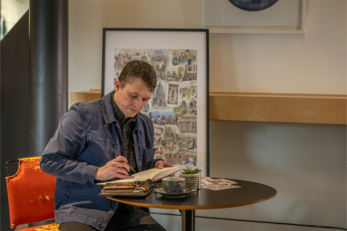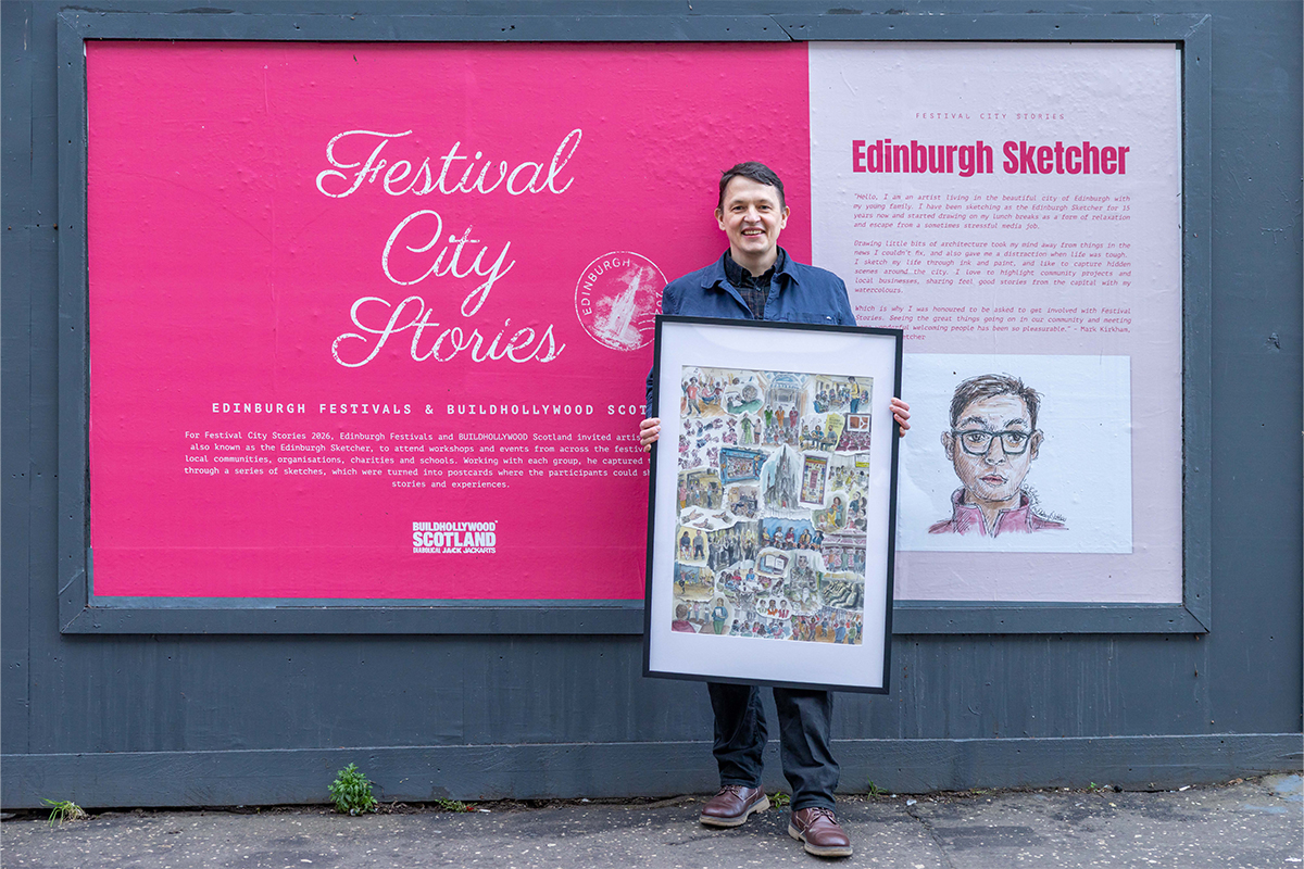 For the third edition of Festival City Stories, Edinburgh Festivals and BUILDHOLLYWOOD Scotland invited artist Mark Kirkham, also known as the Edinburgh Sketcher, to attend workshops and events from across the festivals’ work with local communities, organisations, charities and schools.