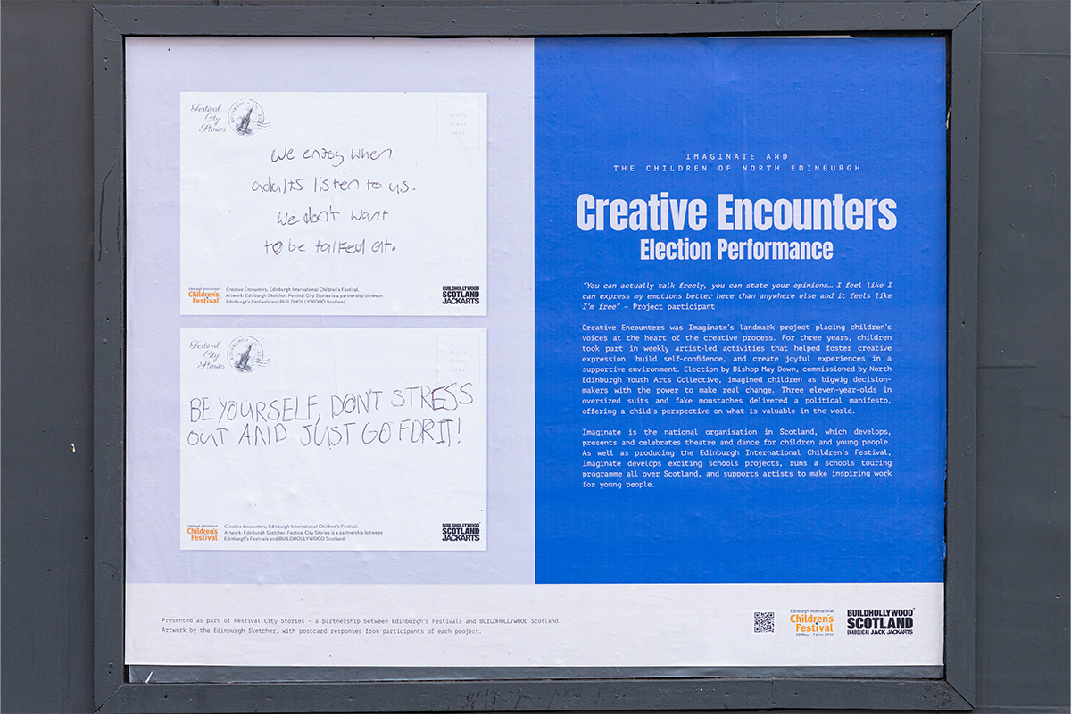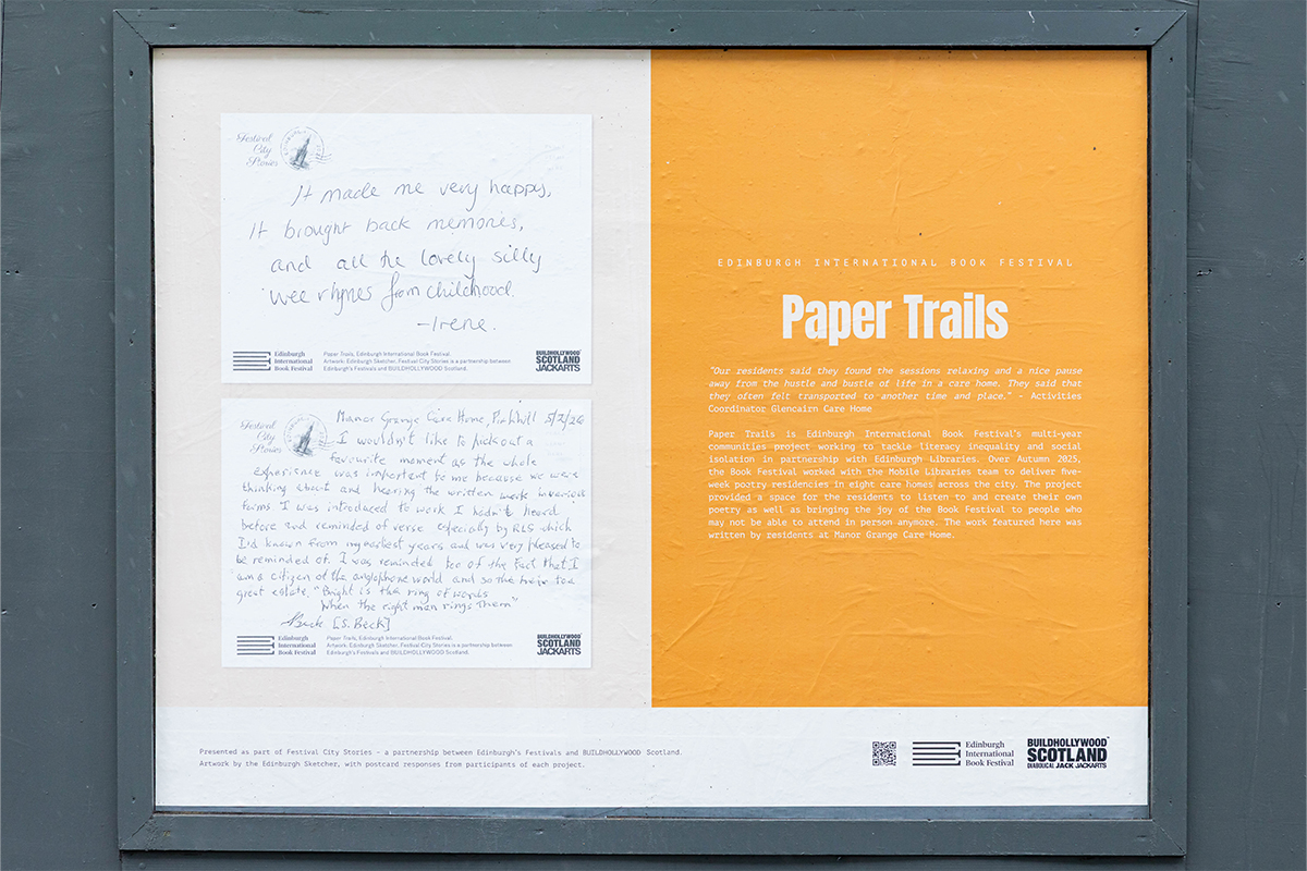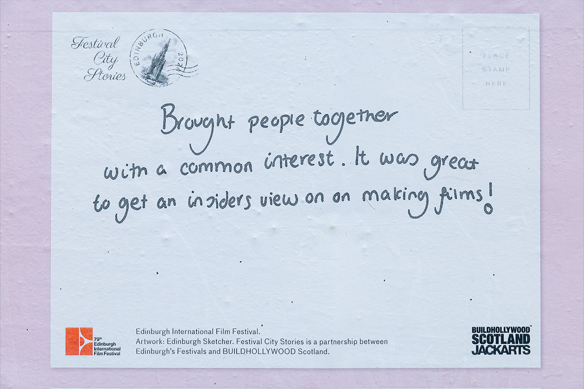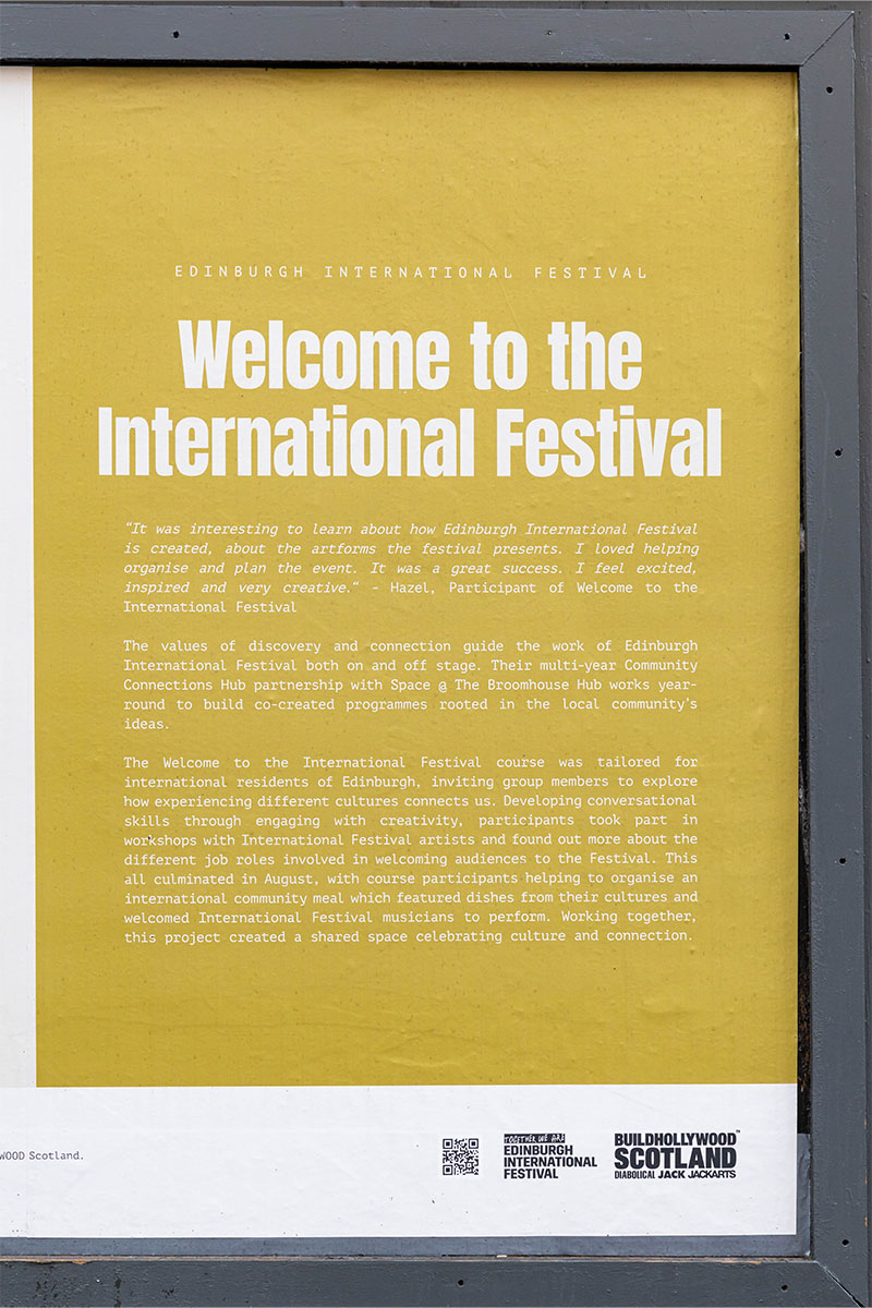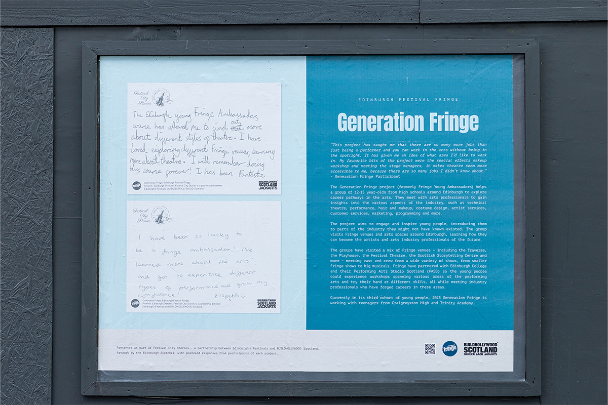 Now concluding its third year, Festival City Stories is a collaboration between the Edinburgh Festivals and BUILDHOLLYWOOD Scotland, which aims to creatively highlight the year-round partnerships between the festivals and their local communities.
