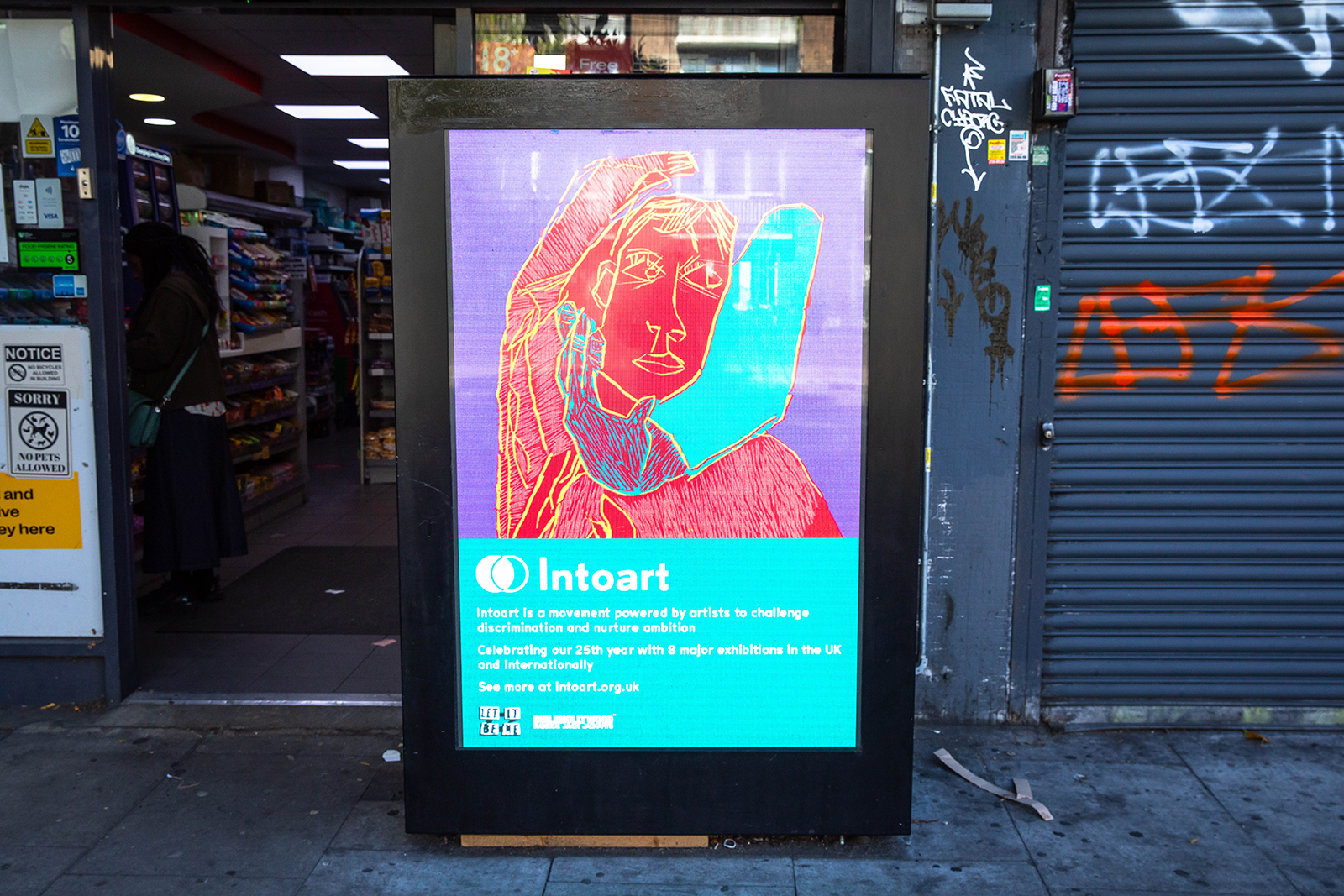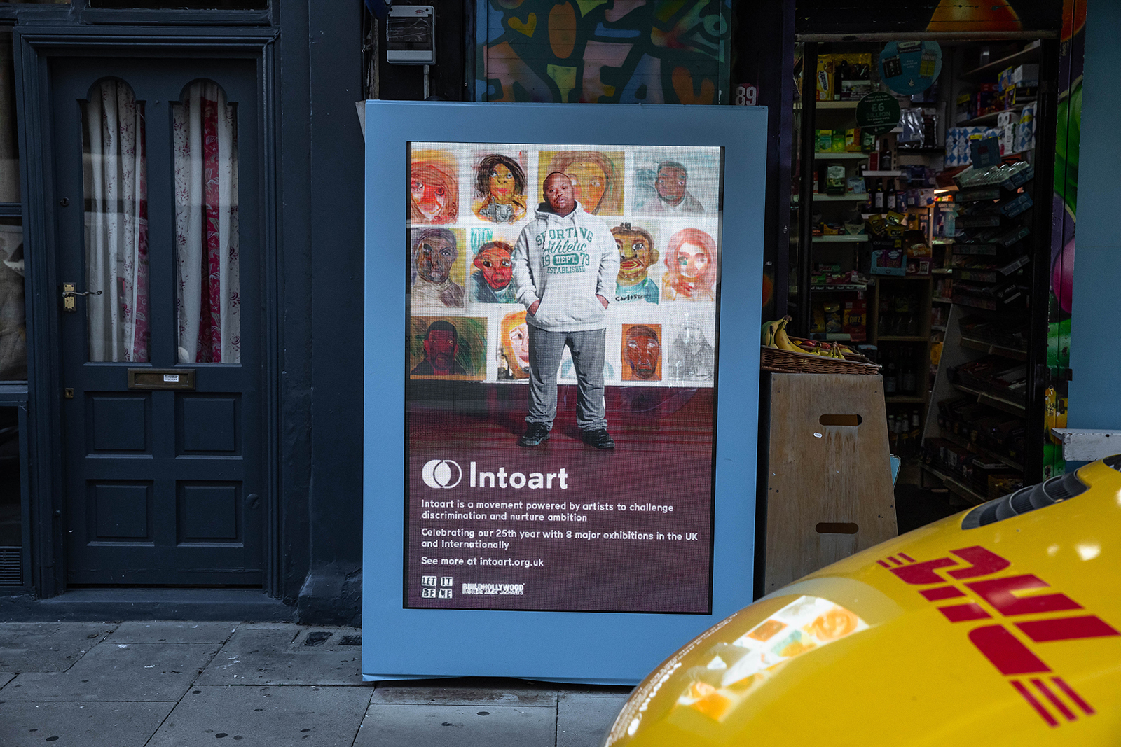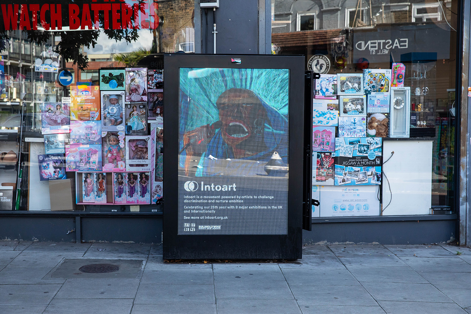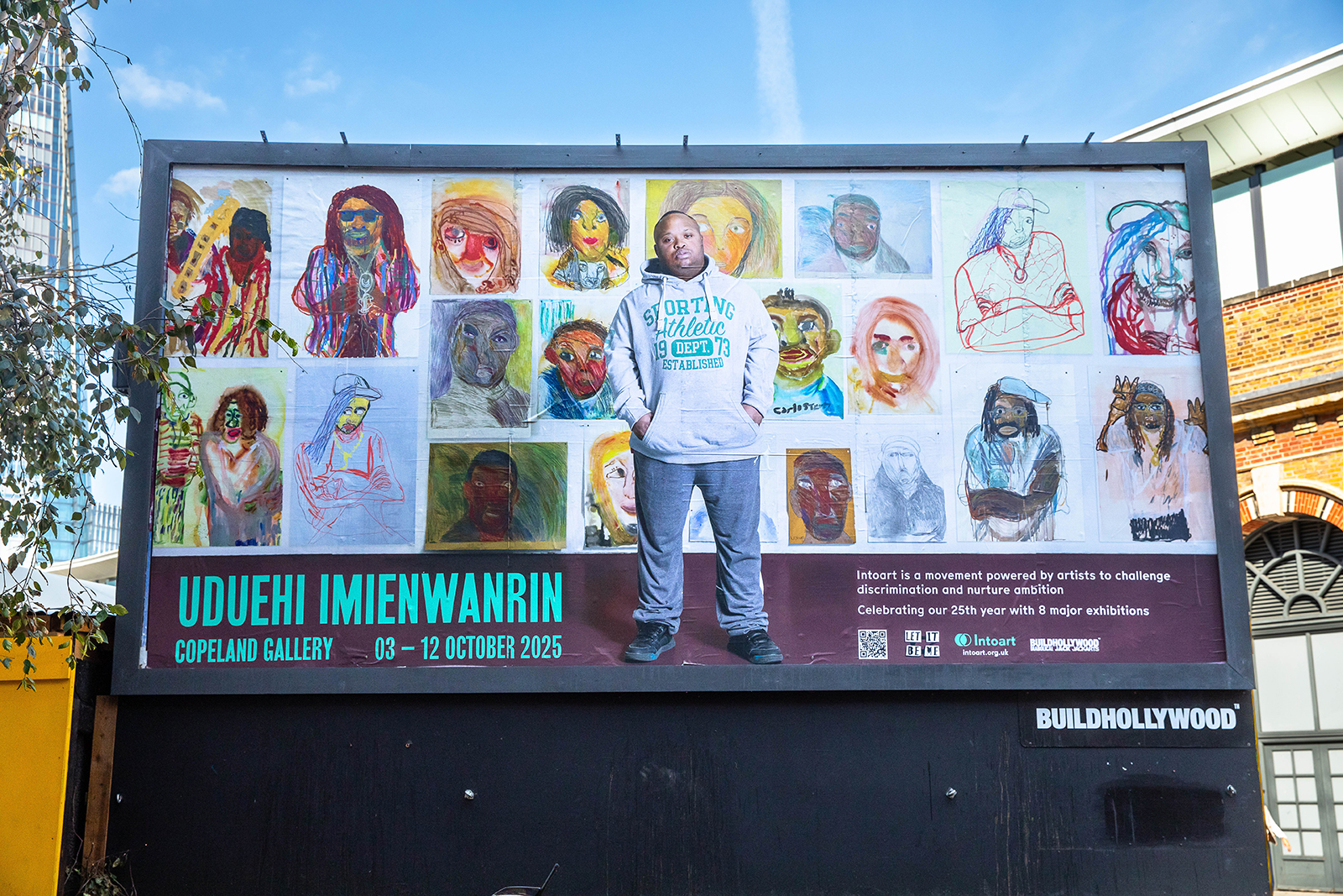 For 25 years, Intoart has grown from its base in Peckham to a presence that now stretches across London. This autumn, in partnership with BUILDHOLLYWOOD, the collective marks its 25th anniversary by stepping outside the gallery and into the public realm once again, claiming billboards across the capital where visibility, equity and imagination meet the city at street level.