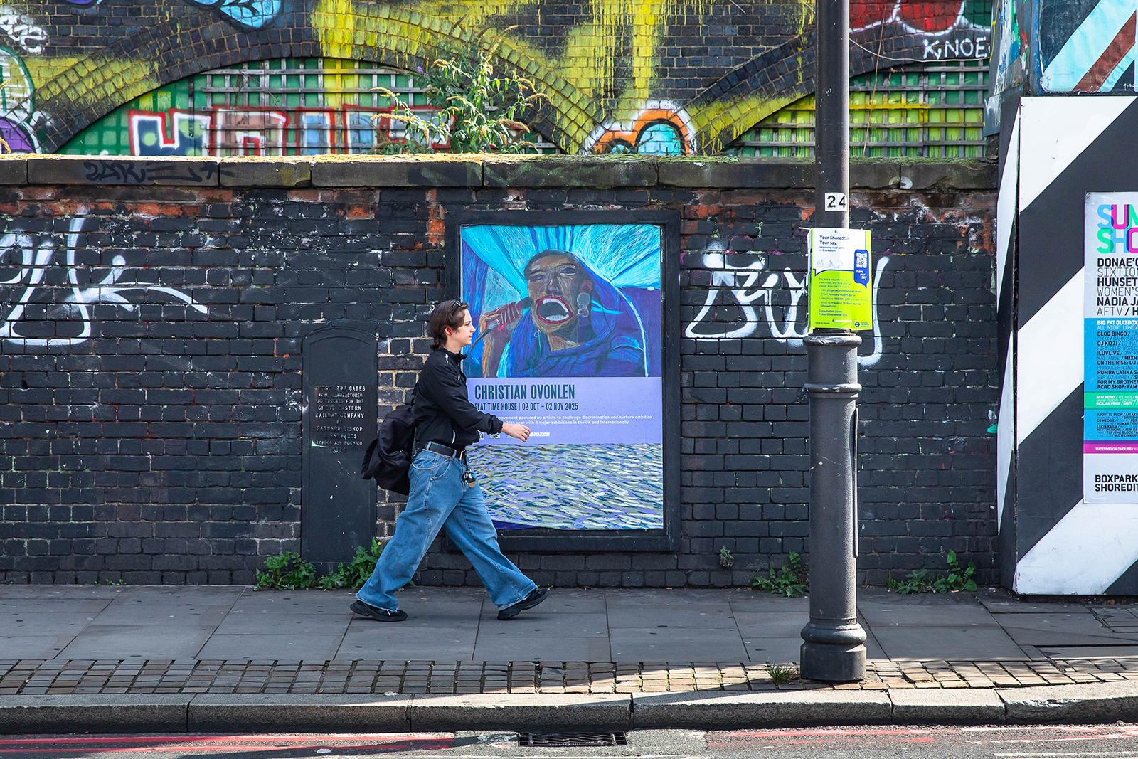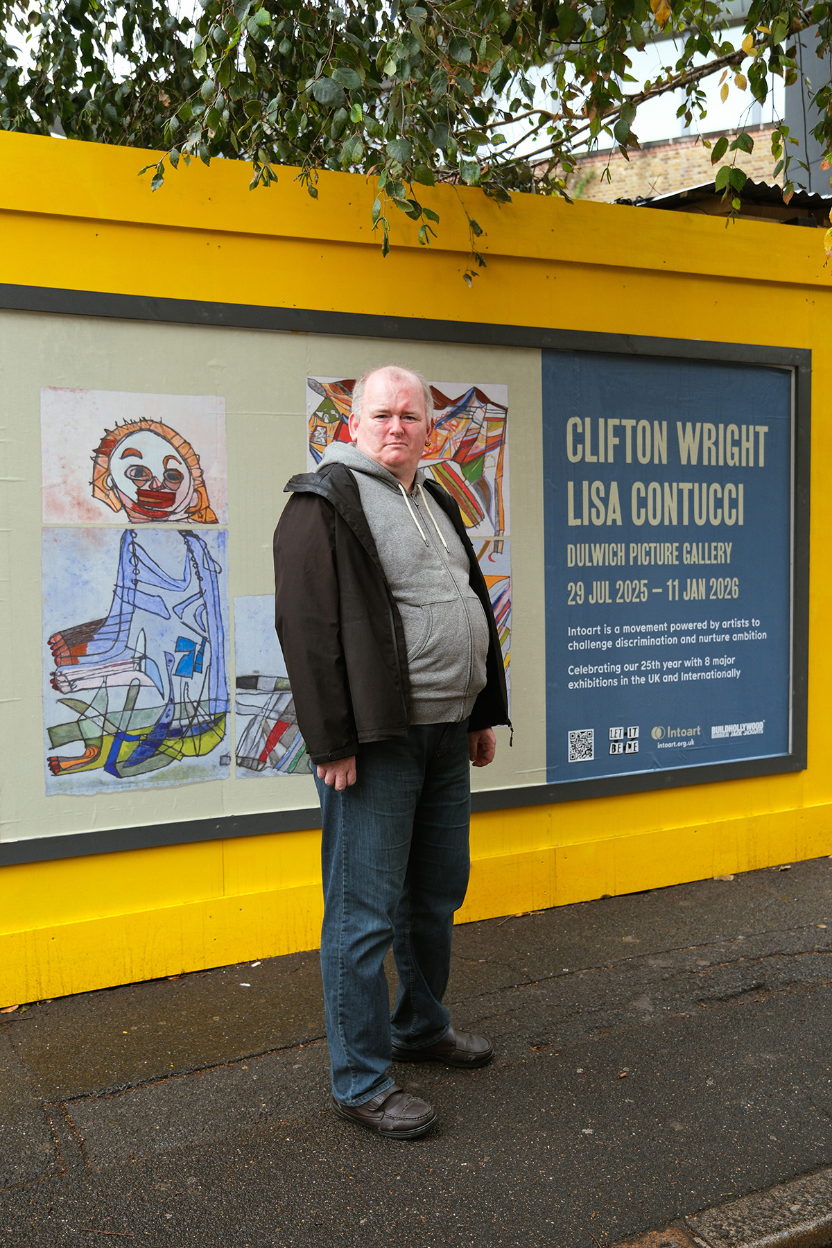 That sense of connection was first felt and found in 2024, when Intoart artist Andre Williams unveiled Let It Be Me in the pocket garden of Camberwell New Road, a bright, carmine coloured public sculpture commissioned by BUILDHOLLYWOOD a short 12 months ago. Andre’s work is invitational and vibrant, a conversational four word prompt of “let it be me” that asks passersby to reflect and ask the question; “why should it be me?”. In many ways, the artists answer the question by virtue of their work, using the billboards as a platform for artists to be seen on their own terms. “They’ll probably think about things they’ve made assumptions about when they see the work,” says artist Nick Fenn in reference to the public observing the billboards. “They might start paying attention.”