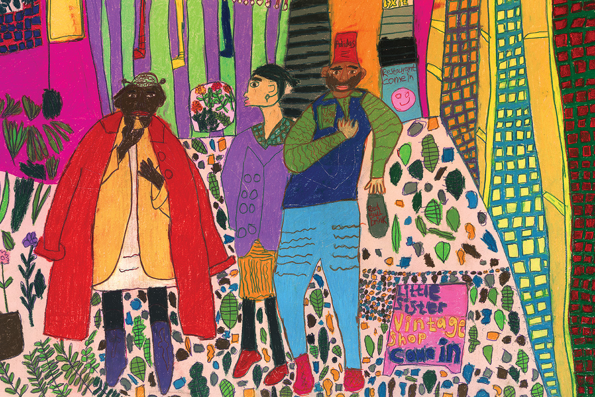 That drive to push things forward, what the artists call “taking it to the next level”, is everywhere in the Intoart studio. Clifton Wright, whose large-scale pastel drawings now hang in Dulwich Picture Gallery, talks about confidence as much as skill: “Back then I didn’t have no confidence or anything… Like the billboards, it’s another challenge into the unknown. But it’s about seeing what comes of it, not just for me, but for all my fellow Intoart artists.”