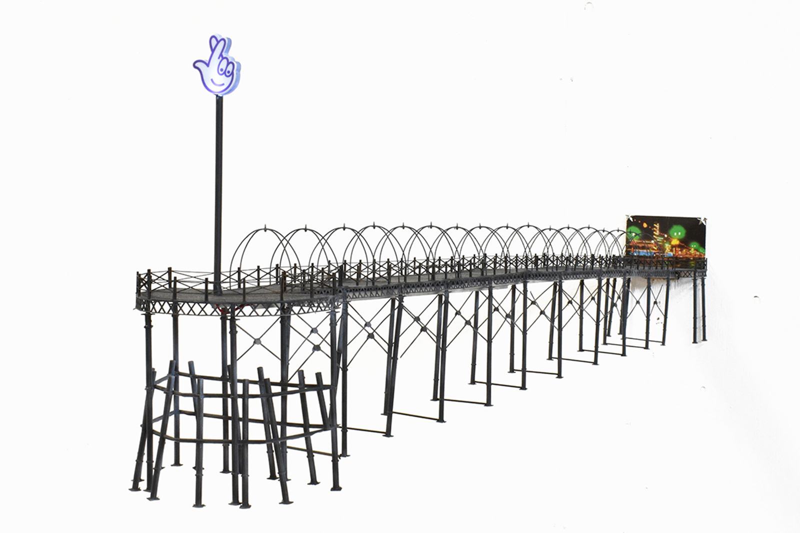 Max King has a knack for showing familiar objects and structures in a new light, and often in completely different proportions. Working in sculpture and installations, he toys with scale and perspective to create new encounters for his audiences, whether by collapsing buildings and other architectural structures into miniature models, or by blowing up small, everyday items such as pin badges into large-scale pieces that people can walk around. To him, presenting typical places and objects in atypical ways can be both magical and thought-provoking at the same time.