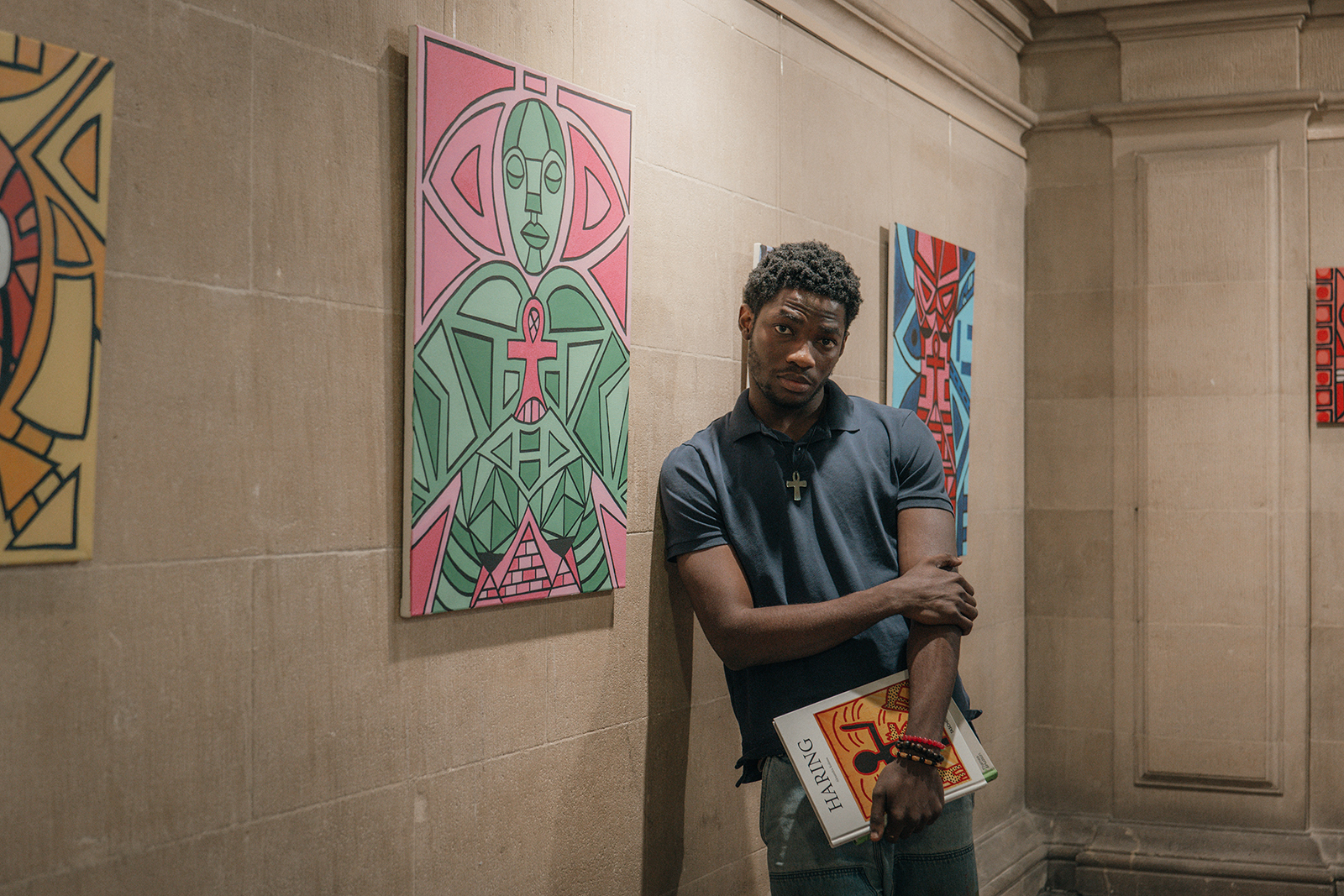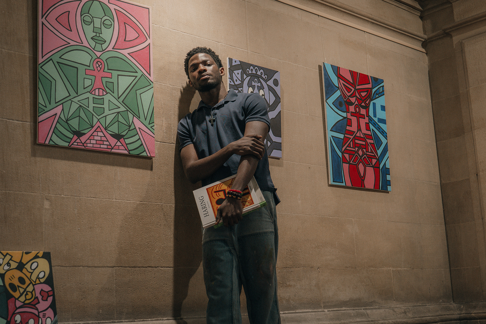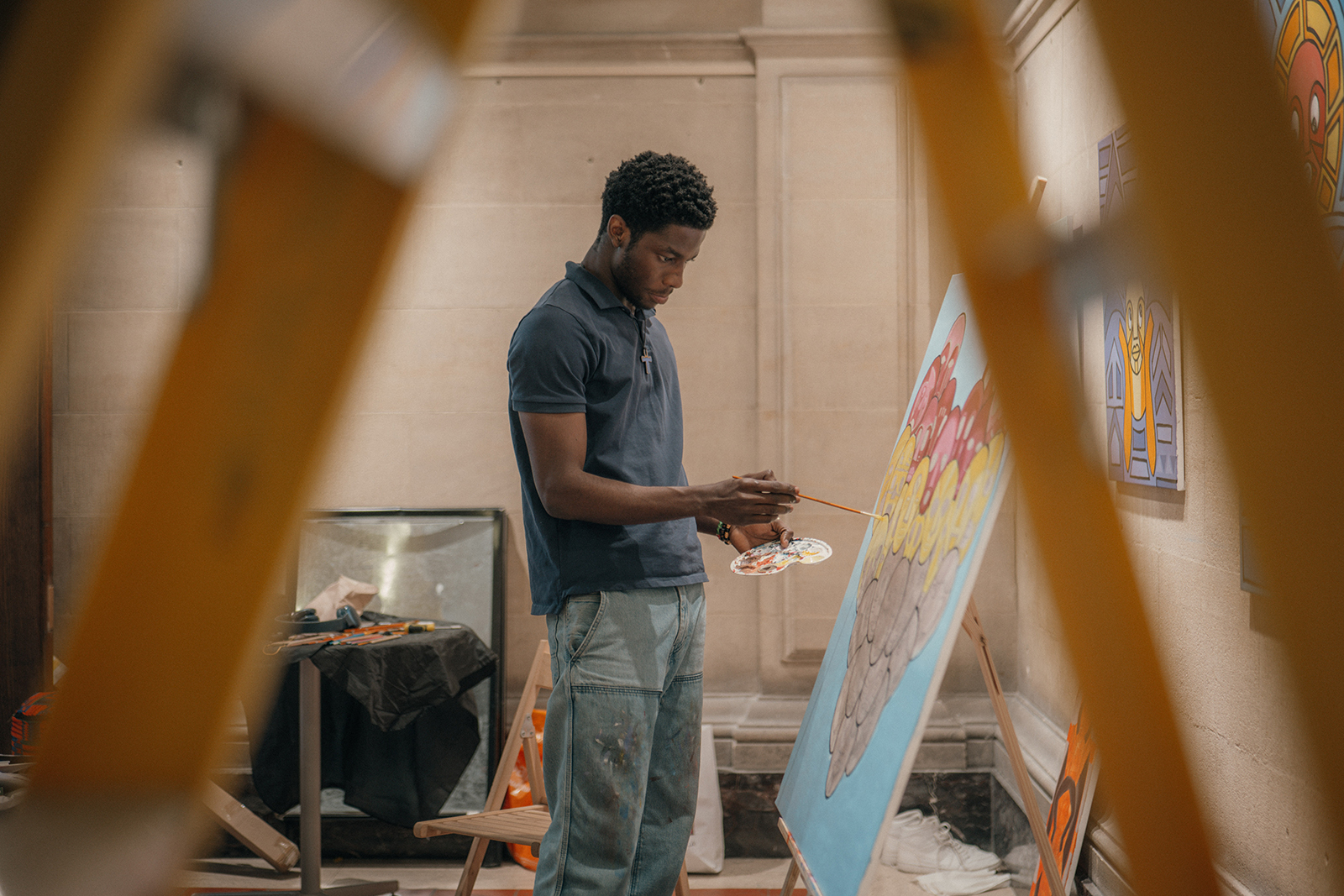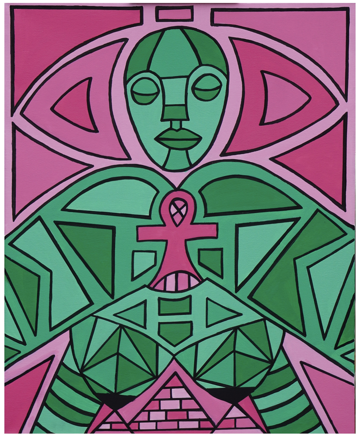 B: I met Cleo during a little exhibition I had at the end of May, and shortly after, Cleo reached out to me about a possible opening for a commission for an art project. So we met later to discuss it in a very lengthy fashion, and after we discussed it, I went back and made a sketch. I didn’t know the title was The Pan African Descent Journey yet, and I made the sketch and I felt like this was, in my own opinion, a little bit spiritual because I had literally no idea that that was going to be the title, but the sketch I made didn’t need any adjustments. The sketch I made correlated to what the title was, and I was like, I wouldn’t say it’s a coincidence, because there’s higher forces that govern our actions, you know?