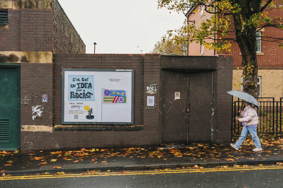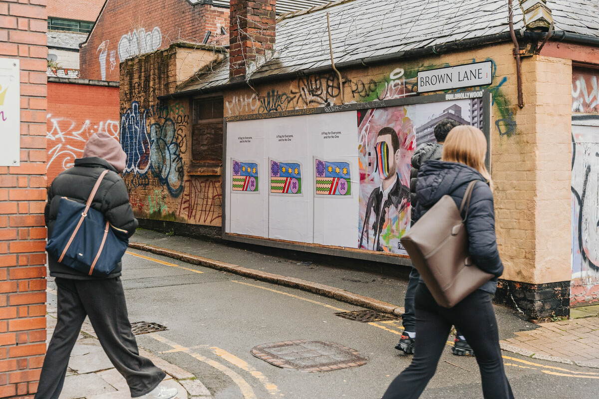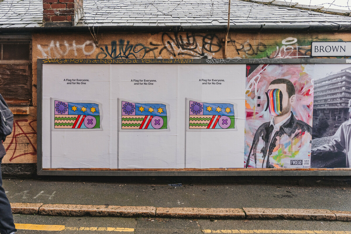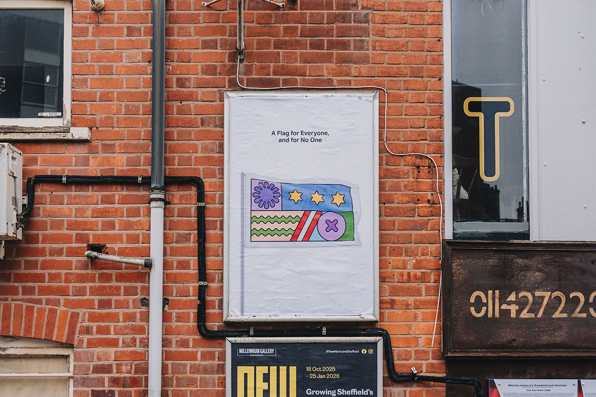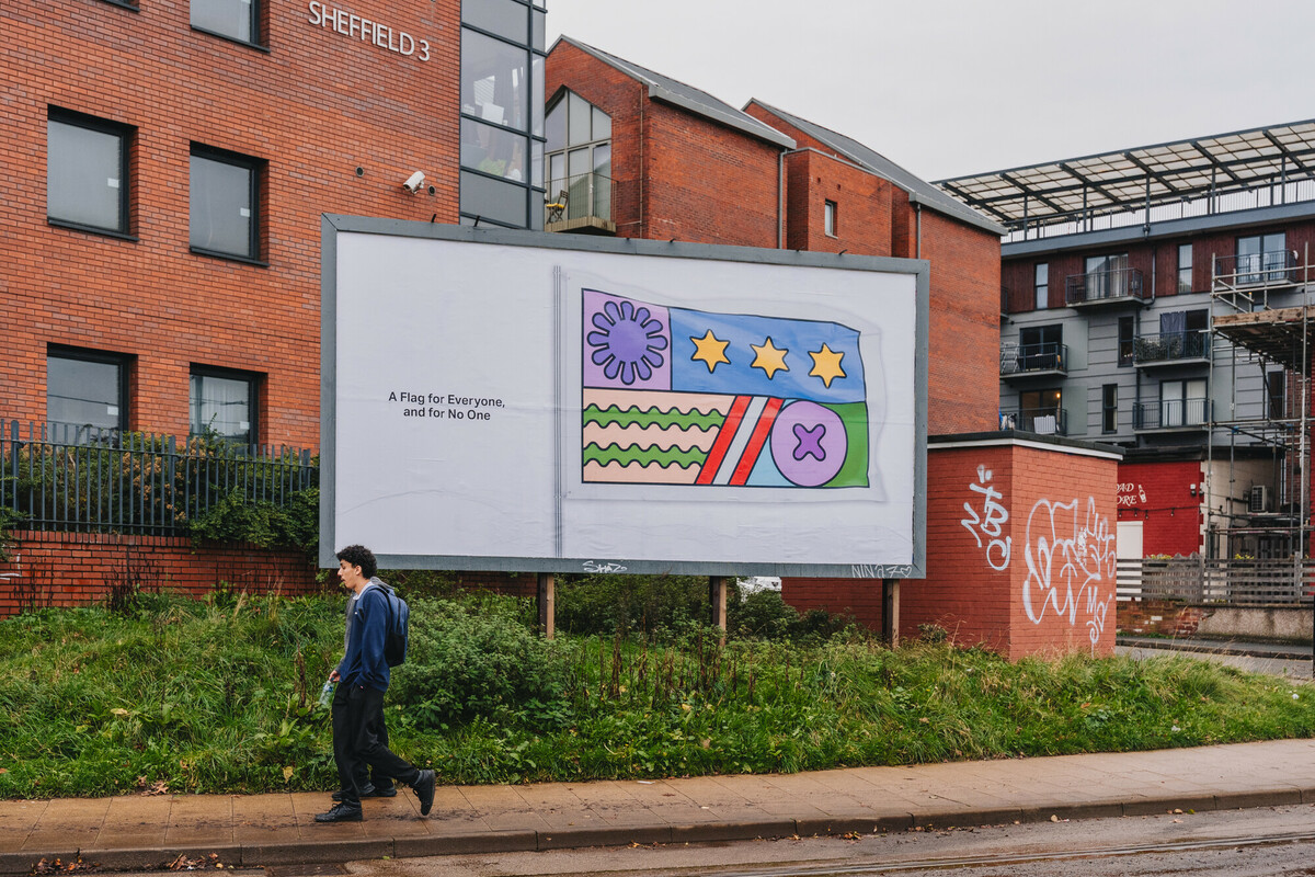 In response to the growing presence of flags across Britain and the weight of division accompanying them, artist and graphic designer Andy Welland offers us Imagined Territories. A self-initiated public artwork funded by ArtCry, Imagined Territories reimagines the flag as a symbol of connection instead — a flag for everyone, and for no one.