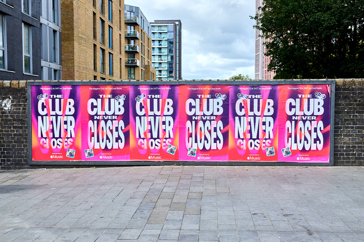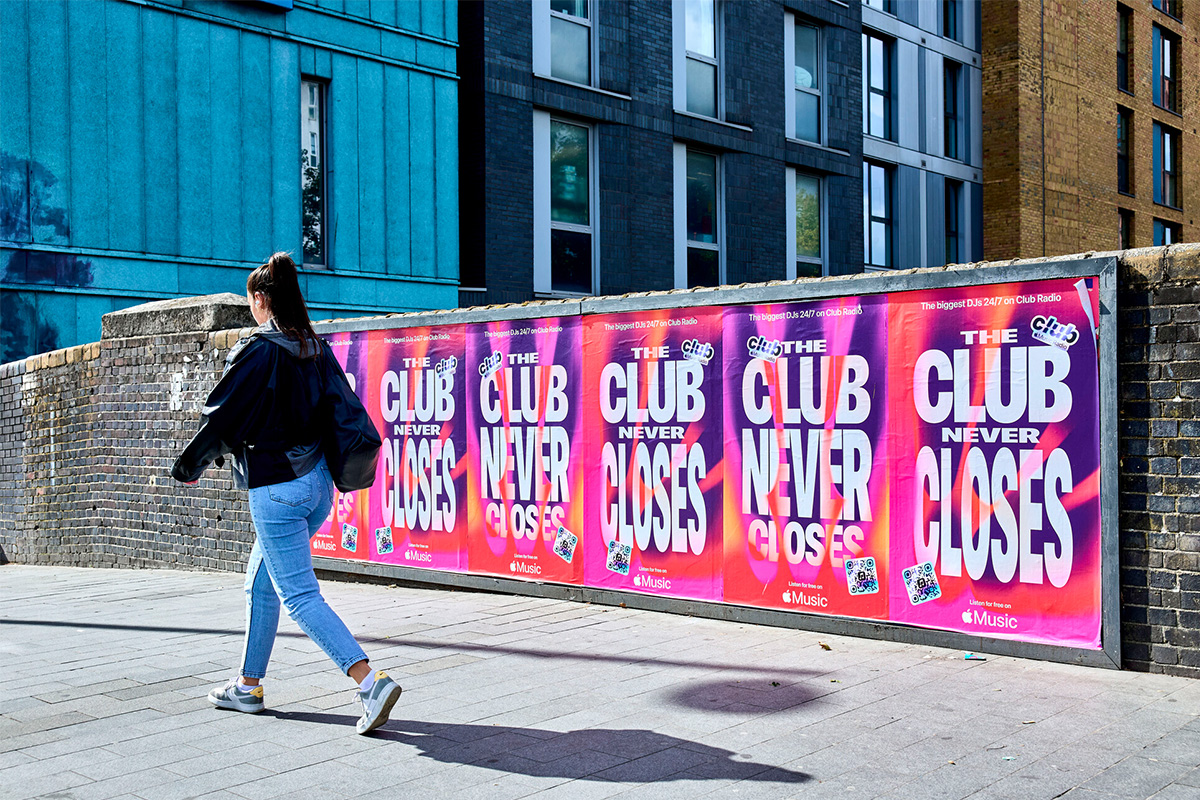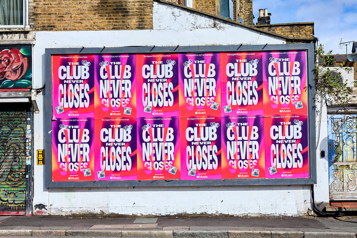 To celebrate the launch of Apple Music’s ‘Club Radio’, DIABOLICAL teamed up with Apple to take over the streets of London with a bold poster campaign – complete with a vibrant, 90s rave inspired artwork that made you want to get up and groove. The new global radio station will broadcast new music, huge artist shows and exclusive interviews 24/7 around the clock, solely focusing on dance and electronic beats. With Club Radio’s launch set to feature exclusive sets by Honey Dijon, Jamie XX, FKA twigs and Nia Archives, this is one party you don’t want to miss.