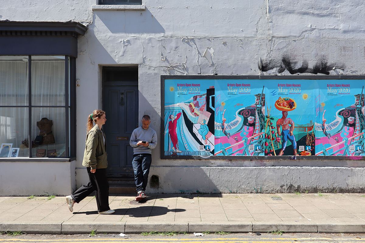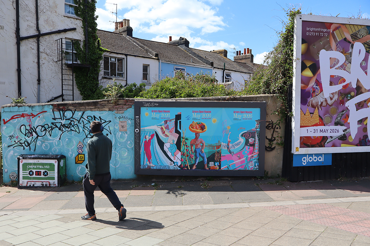 JACK ARTS launched the festival’s campaign using striking artworks by Alej ez, whose pieces draw on personal experience, art history and Brighton’s identity. Billboard frames are adorned with illustrated postcards mapping the trails visitors can follow to homes showcasing everything from bacteria and DNA to inflatable sculpture, talking ceramics, textiles and paint.