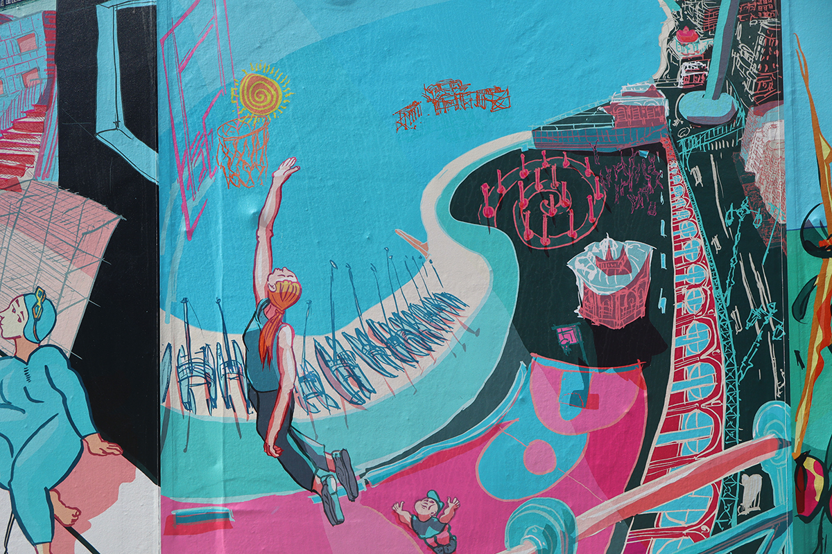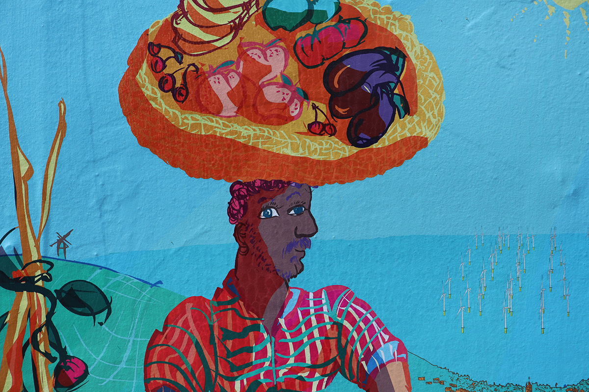 Our cover artist for this May’s festival, Alej ez, is an extraordinary artist. The designs he has produced for the campaign are incredibly vibrant and eye catching. Each of the three designs reflects an aspect of the city of Brighton and Hove and the countryside and seascape around us. Each explores different aspects of the history of the city, such as the Volks railway and famous sea swimmer Martha Gunn. I hope people will be stunned by their impact and then intrigued by the many fascinating details each image contains.
