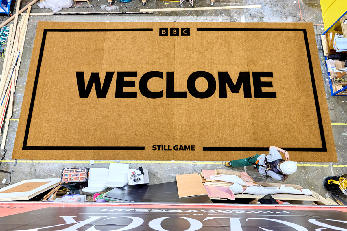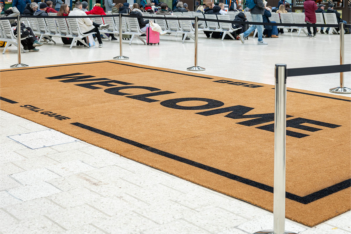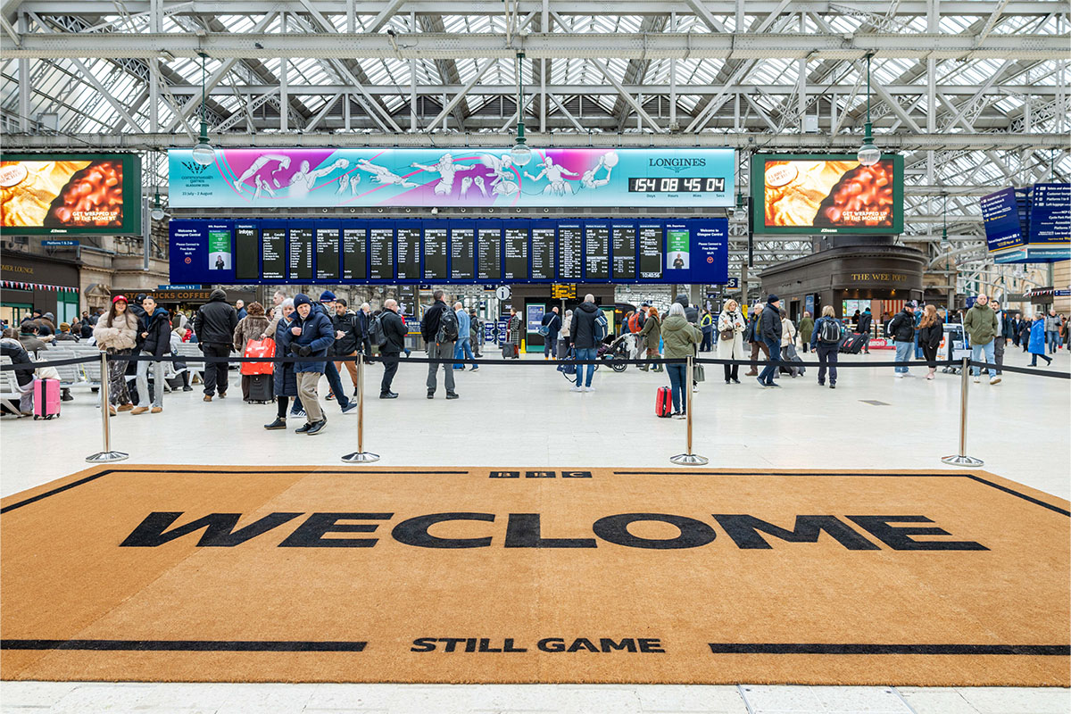 JACK ARTS Scotland partnered with BBC Scotland to launch the first phase of the Made of Glasgow campaign with a bold installation at Glasgow Central Station. A giant “Welcome” mat was unveiled, celebrating the city while paying tribute to the hit show Still Game. Featuring the show’s intentionally misspelt version of “welcome,” the installation was an instant hit with fans. The show’s stars, Greg Hemphill and Ford Kiernan, were on site to see the public’s reaction to the playful stunt.