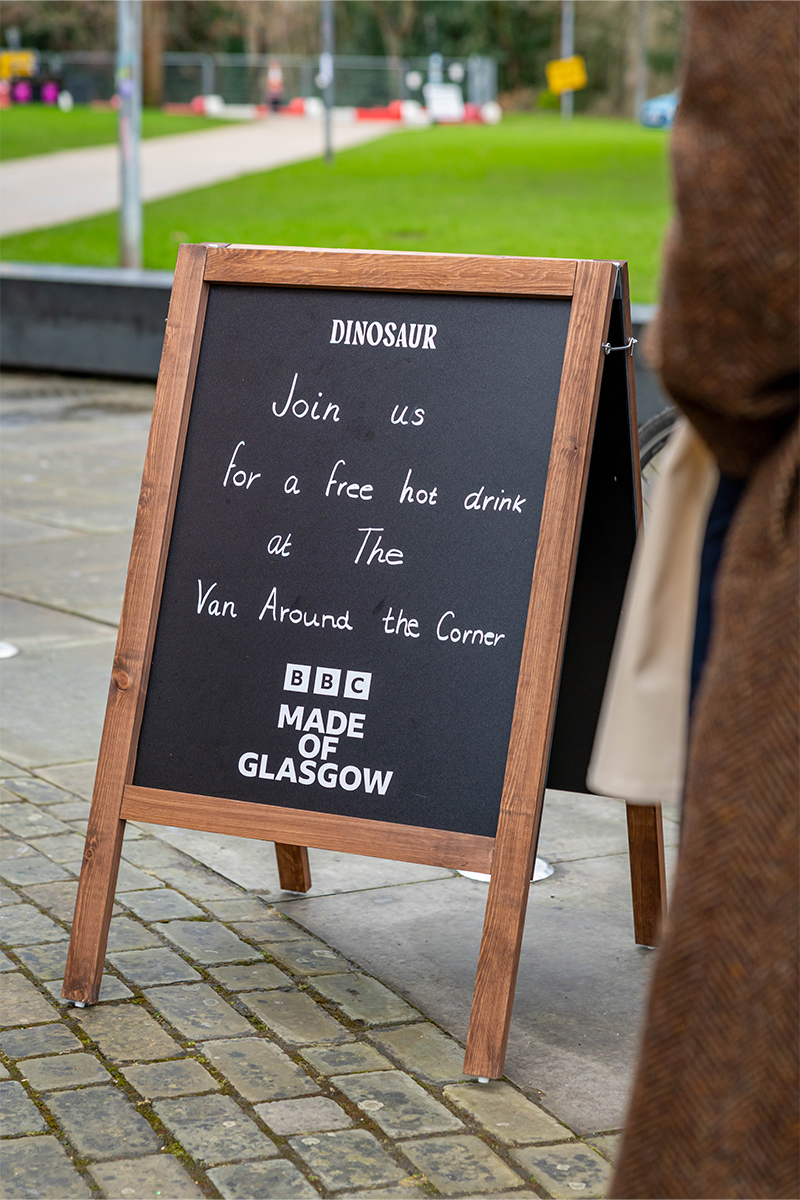 Building on the momentum, the activation continued at Kelvingrove Art Gallery and Museum, where a complimentary coffee van served free hot drinks to commuters and passers-by throughout the day. The cart was a recreation of the one featured in Dinosaur, bringing the Glasgow-based storytelling from the series to life. By combining these two culturally resonant moments, the Made of Glasgow campaign celebrated the city’s creativity while engaging Glaswegians in a warm and memorable way.