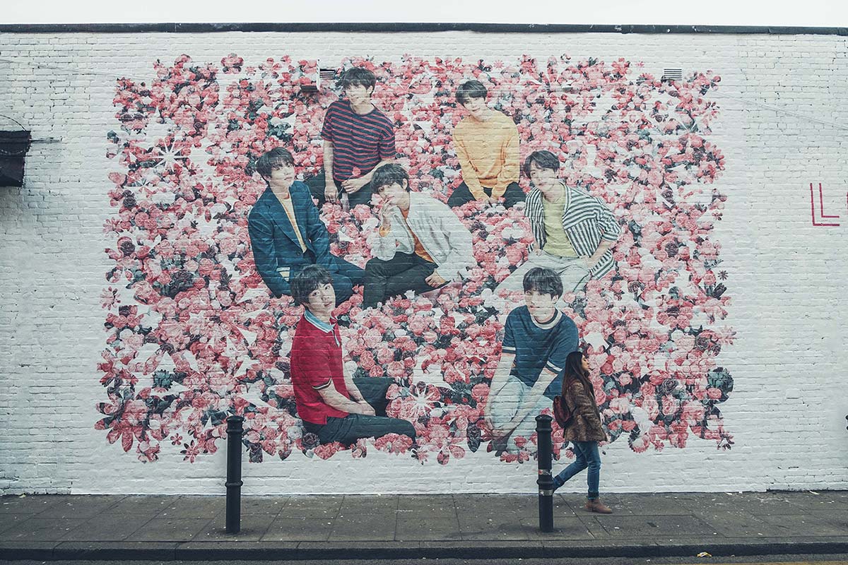 We’ve teamed up with K-Pop poster boys BTS and Live Nation to announce the band’s huge UK show with an incredible hybrid mural right in the heart of Shoreditch. The biggest pop act on the planet will be playing at Wembley Stadium on June 1st as part of their Love Yourself: Speak Yourself World Tour, which includes a line-up of eight stadiums spanning North America, South America, Europe and Asia. This will be their first show back in the country since their sold out concerts at the O2 last October. As soon as the mural went up, social media went into absolute meltdown. Our tweet alone received over 12K likes and 4K retweets within 24 hours.