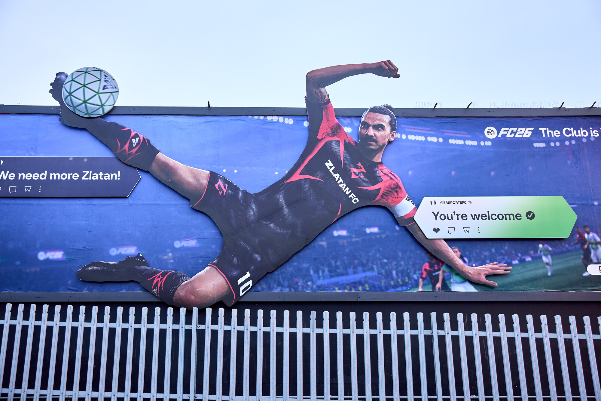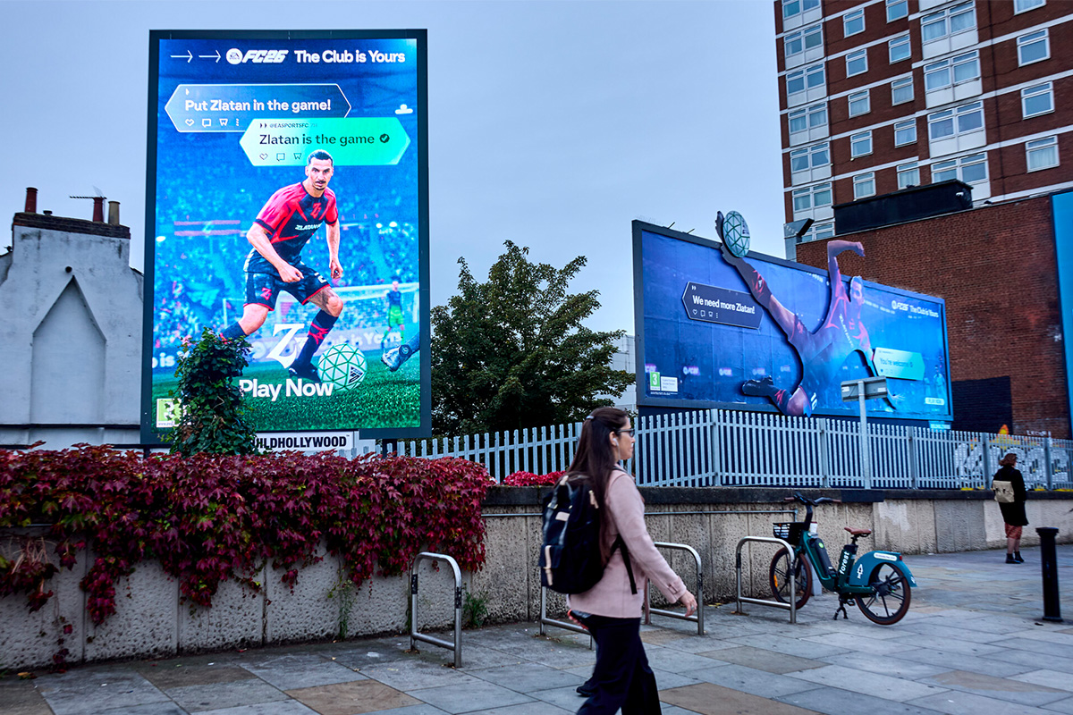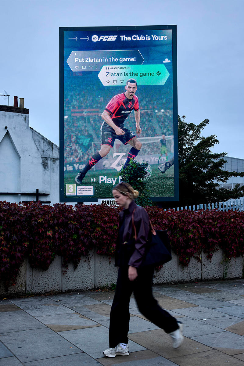 The campaign featured football legend Zlatan Ibrahimović front and centre, with a 96-sheet build and accompanying digital screen that brought Z FC to life. Our dynamic spillboard design saw Zlatan striking the ball clean off the board – breaking the frame and sending the action beyond the screen.