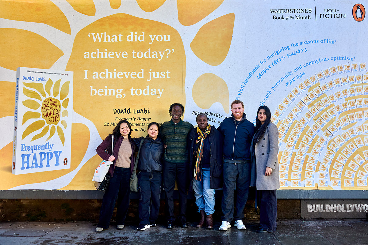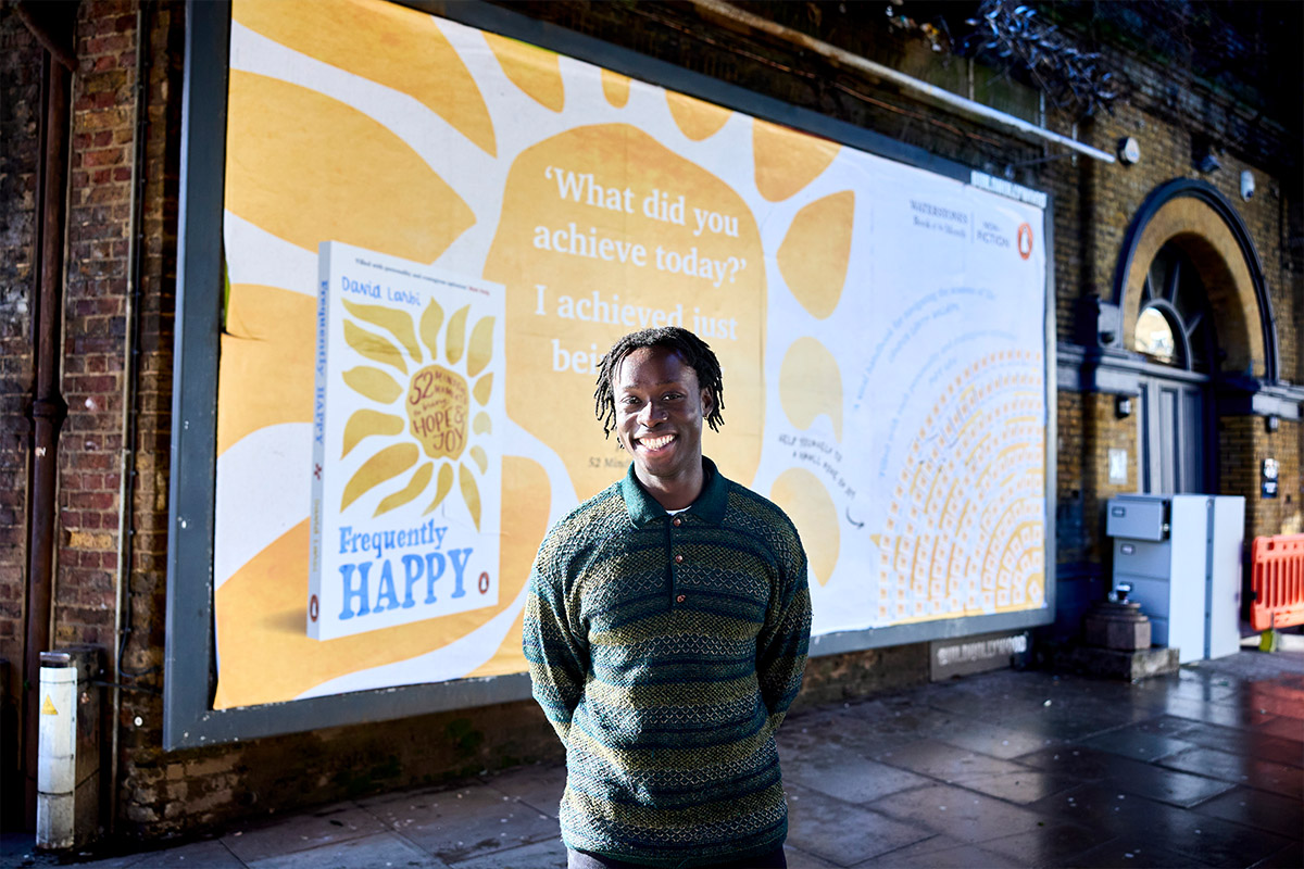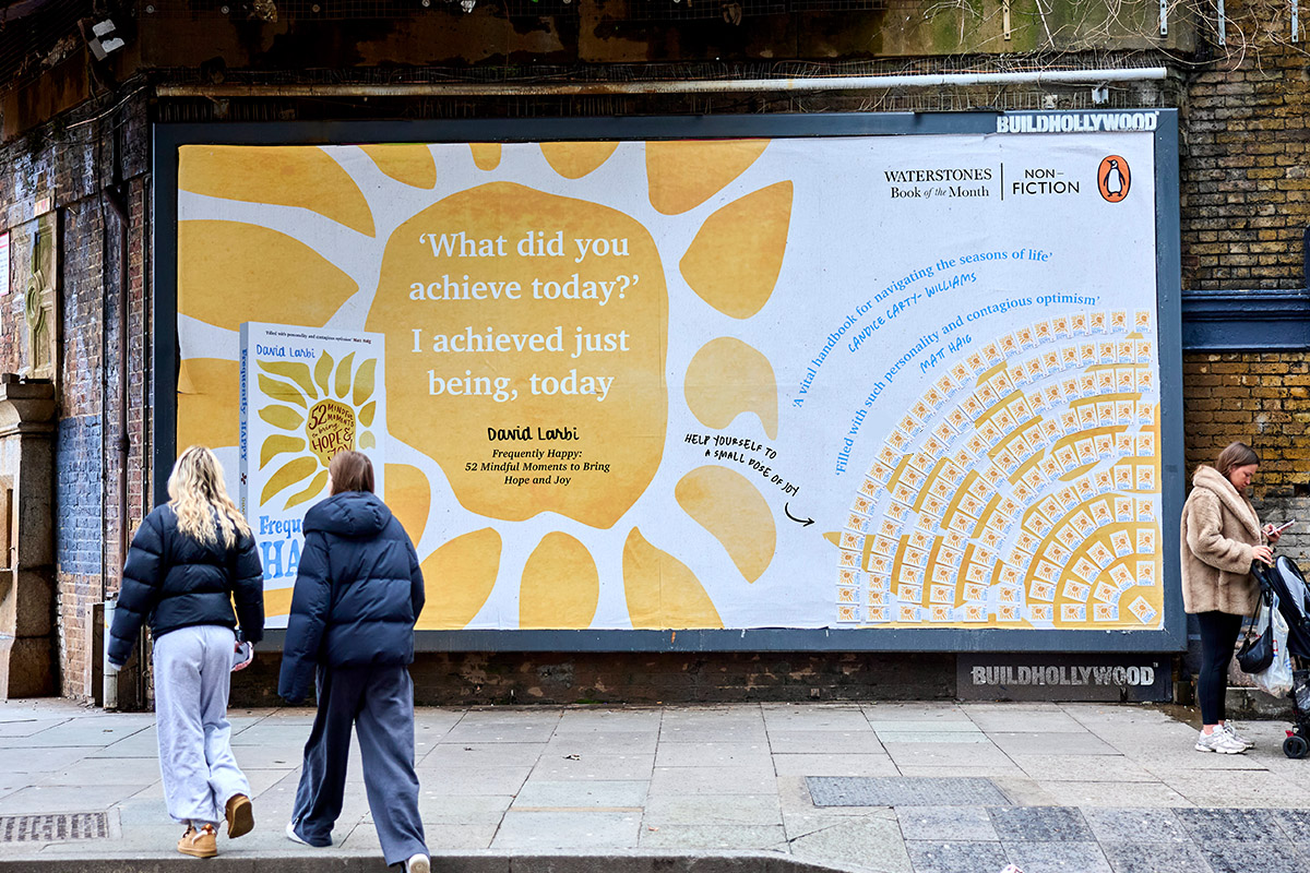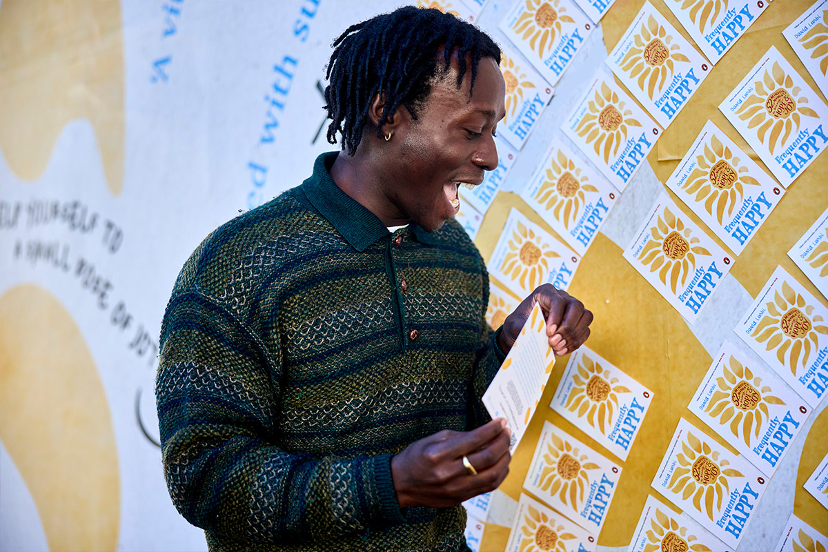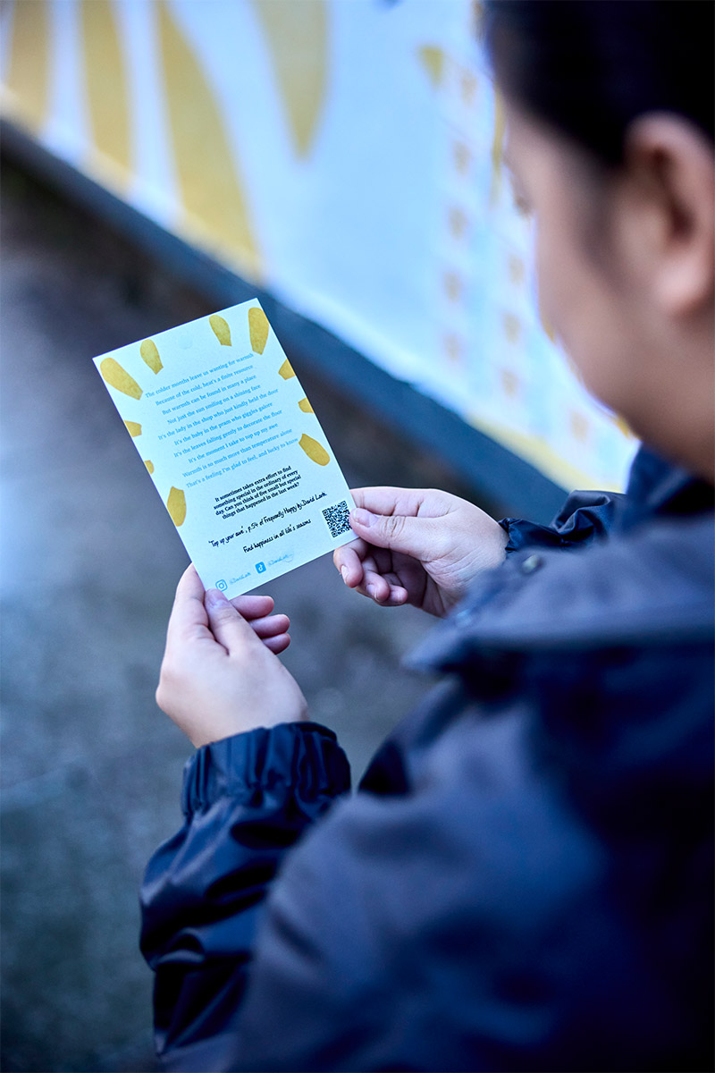 JACK ARTS teamed up with Arena Media to bring this uplifting concept to life. A vibrant billboard featuring tearaway postcards invited passersby to take a small piece of positivity with them. Each card revealed a short poem on the reverse, along with motivational words from Larbi himself. The installation sparked smiles and moments of connection, as people stopped to engage with this joyful, interactive display.