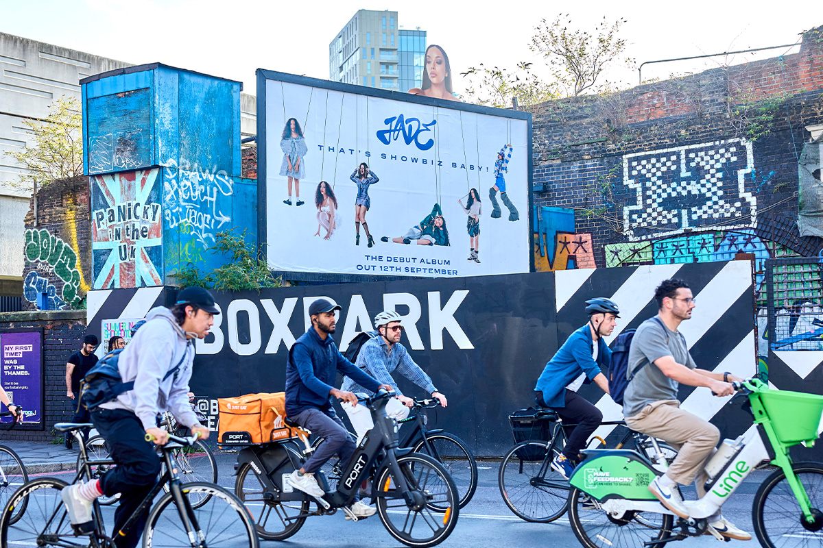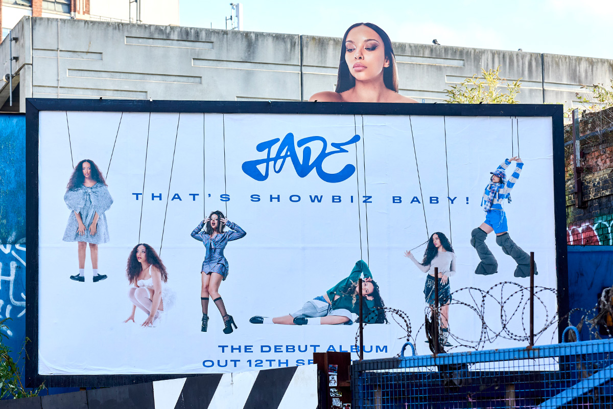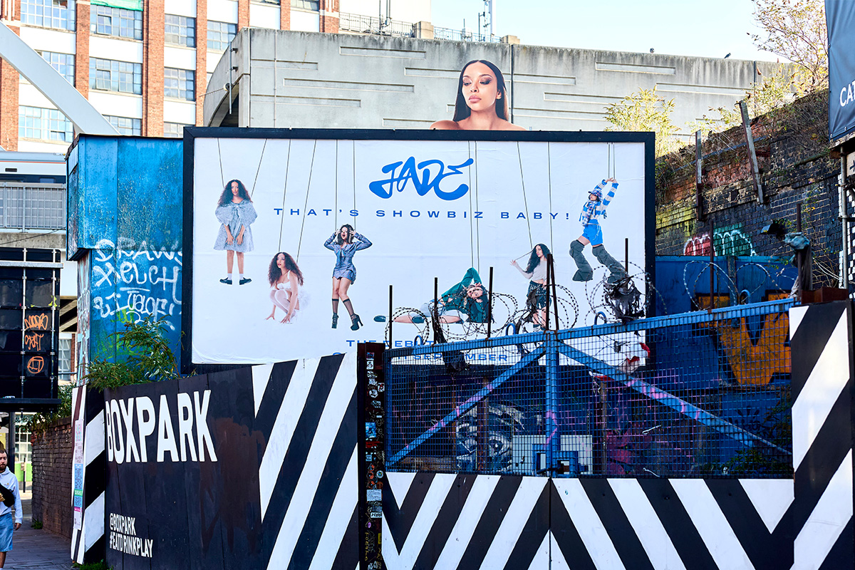 To launch JADE’s debut solo album That’s Showbiz, Baby!, DIABOLICAL teamed up with RCA to create a standout spillboard in Shoreditch. Featuring her own puppeteering artwork, the 3D build showed JADE dancing above the streets, gazing down at different versions of herself. Authentically her and bursting with big pop-girl energy, the campaign marked the beginning of a bold new era in her career.