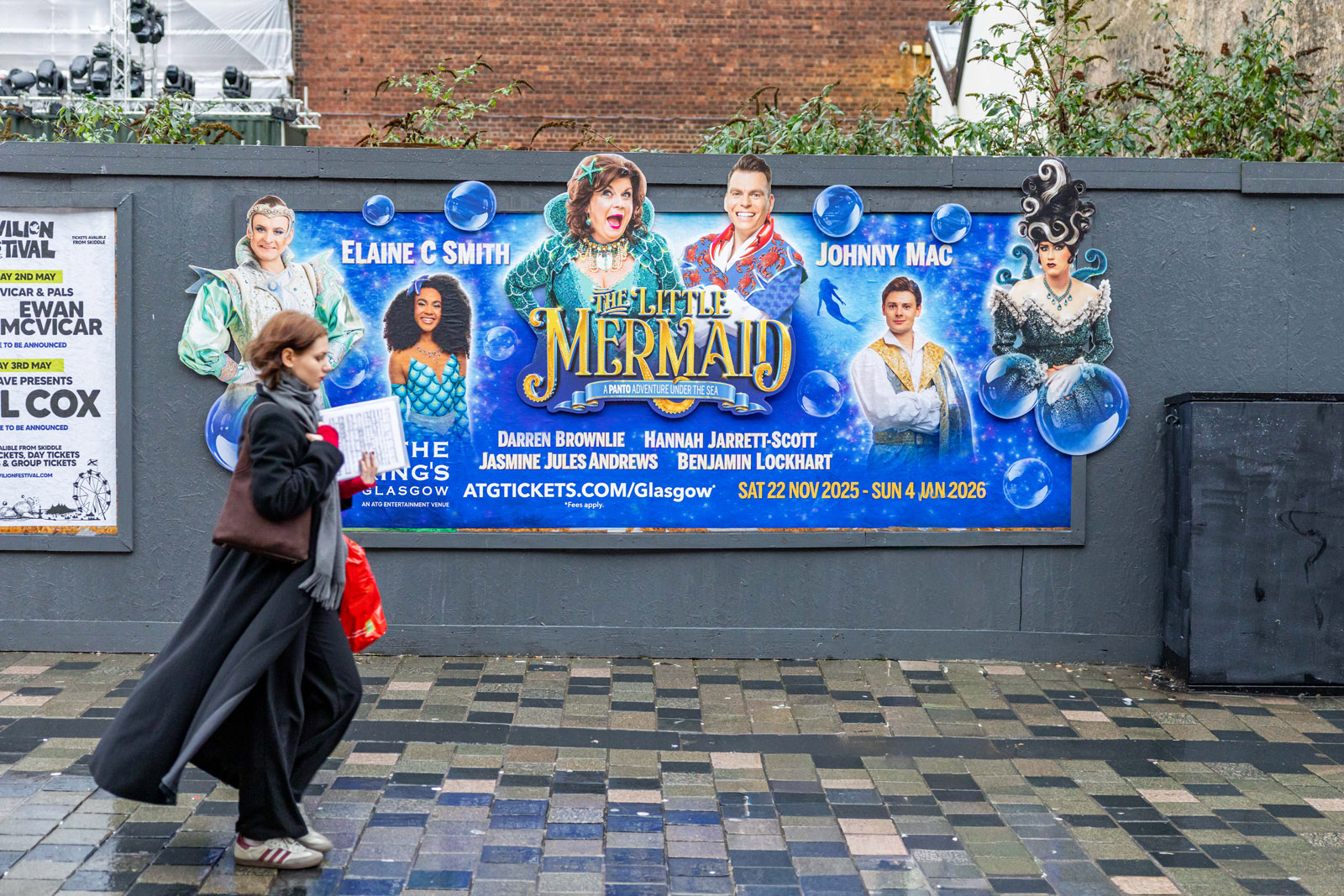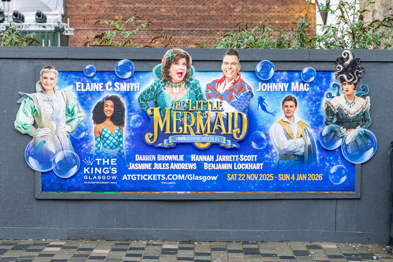 Passersby were transported into the underwater world of Ariel, Ursula and King Triton, with the cast – including panto favourites Elaine C. Smith and Johnny Mac – diving out of the 4 in-a-row takeover thanks to the aptly named bubble-board, which took them beyond the frame and onto the street, accompanied by a run of drum side posters across the city.