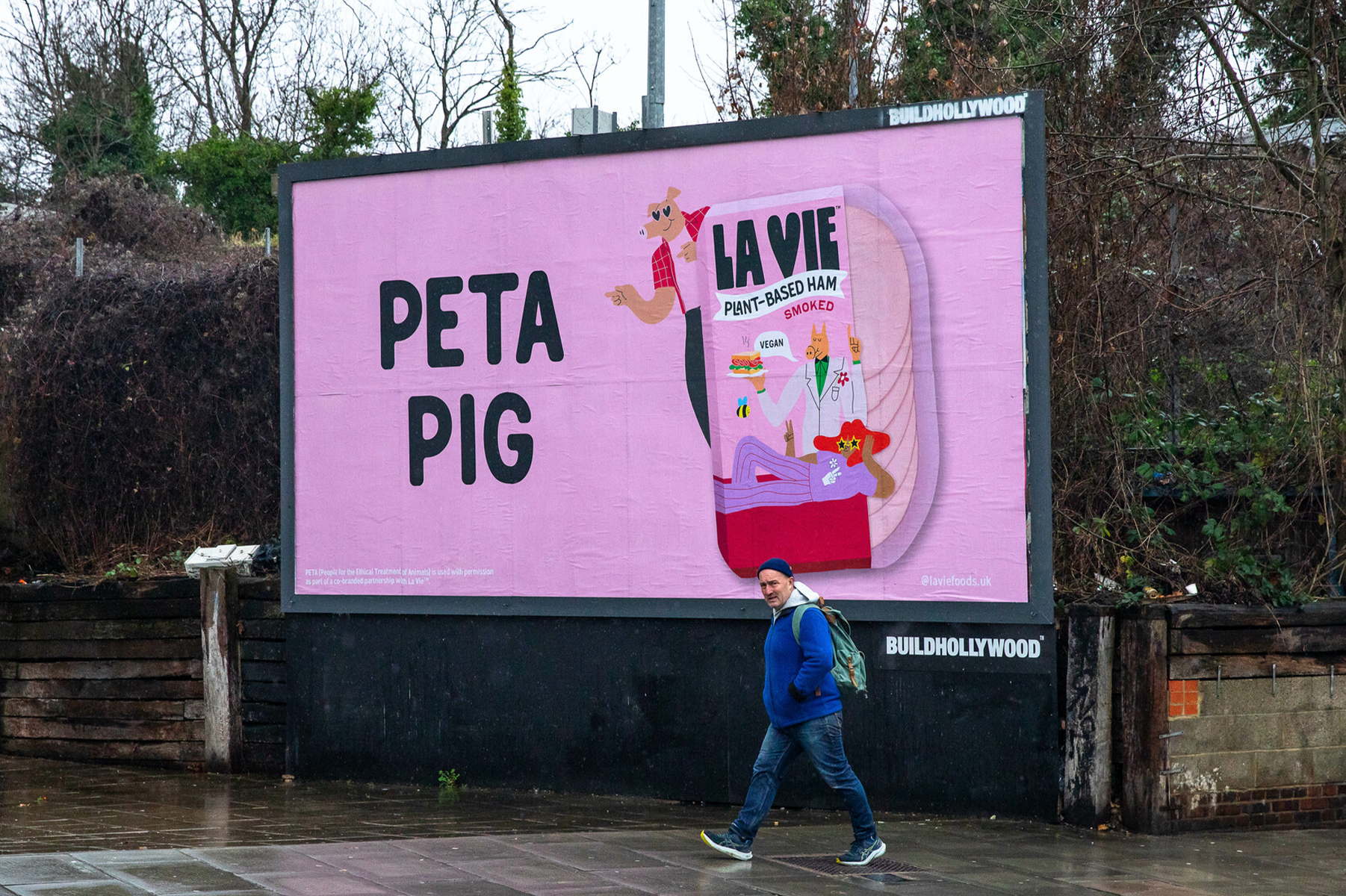 To stir up appetites, JACK teamed up with BILLUPS on a 48-sheet poster campaign across London. Featuring playful copy that paid tribute to legendary vegans, animal-rights activists, and even cartoon pigs, the bold pink artwork and lively illustrations leapt off the page and into the streets. Sure to pique the palates of passers-by, the campaign proved that compromising on meat doesn’t have to mean compromising on taste.