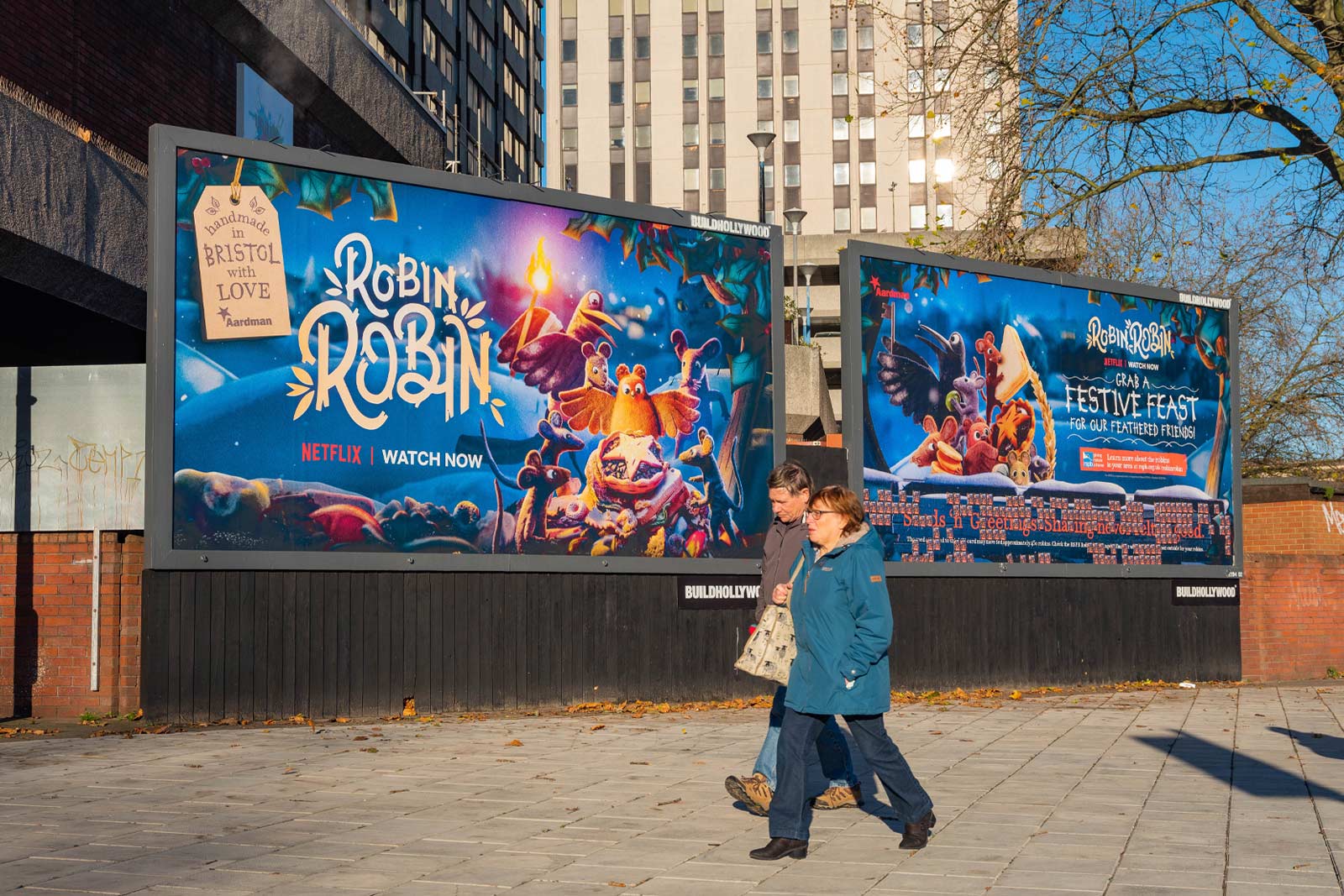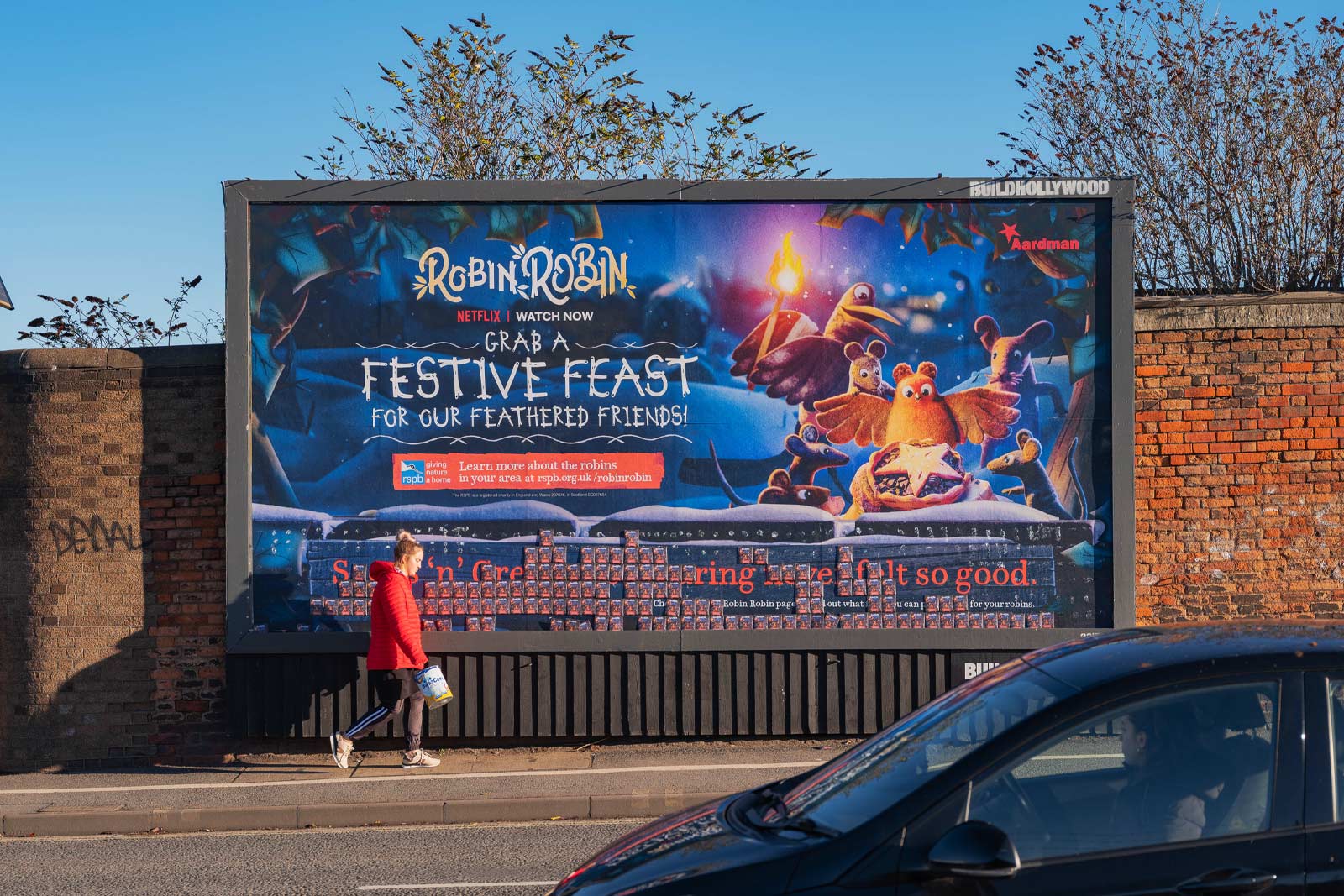We worked with Kinetic to bring the joy of Robin Robin to life on the street, taking the campaign to London and Manchester, and going big in Aardman’s home city of Bristol. Tapping into the film’s connections to nature, the campaign was all about its namesake animal – with creative billboards in each city providing hundreds and hundreds of packets of bird feed for our ‘feathered friends’, ready for passers-by to take away and remember the film by.