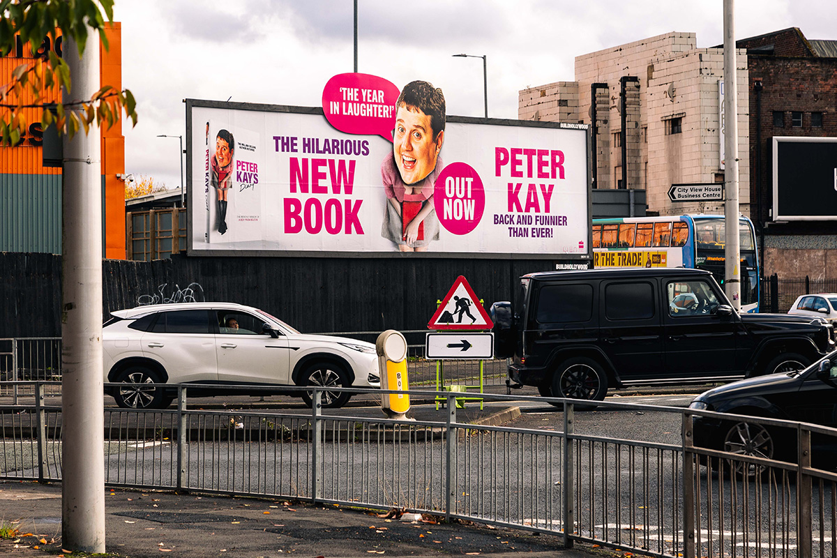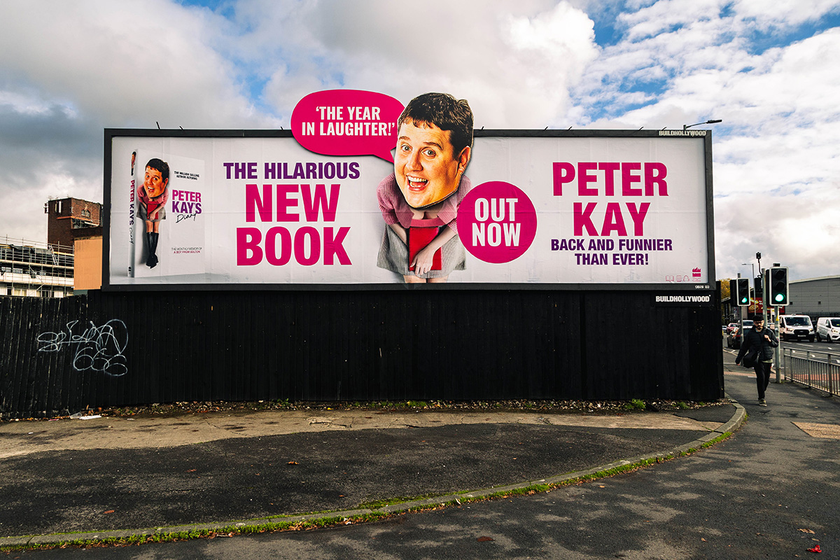 To celebrate the launch, JACK ARTS partnered with HarperCollins to create a standout billboard that brought Peter’s personality to the streets. Taking inspiration from the iconic Bridget Jones’s Diary cover, a playful 96-sheet billboard featured a custom-built spillboard with a bobblehead-style Peter Kay – designed to catch attention and give passersby a good laugh. It’s exactly the kind of display Peter himself would have appreciated: big, bold, and full of humour.