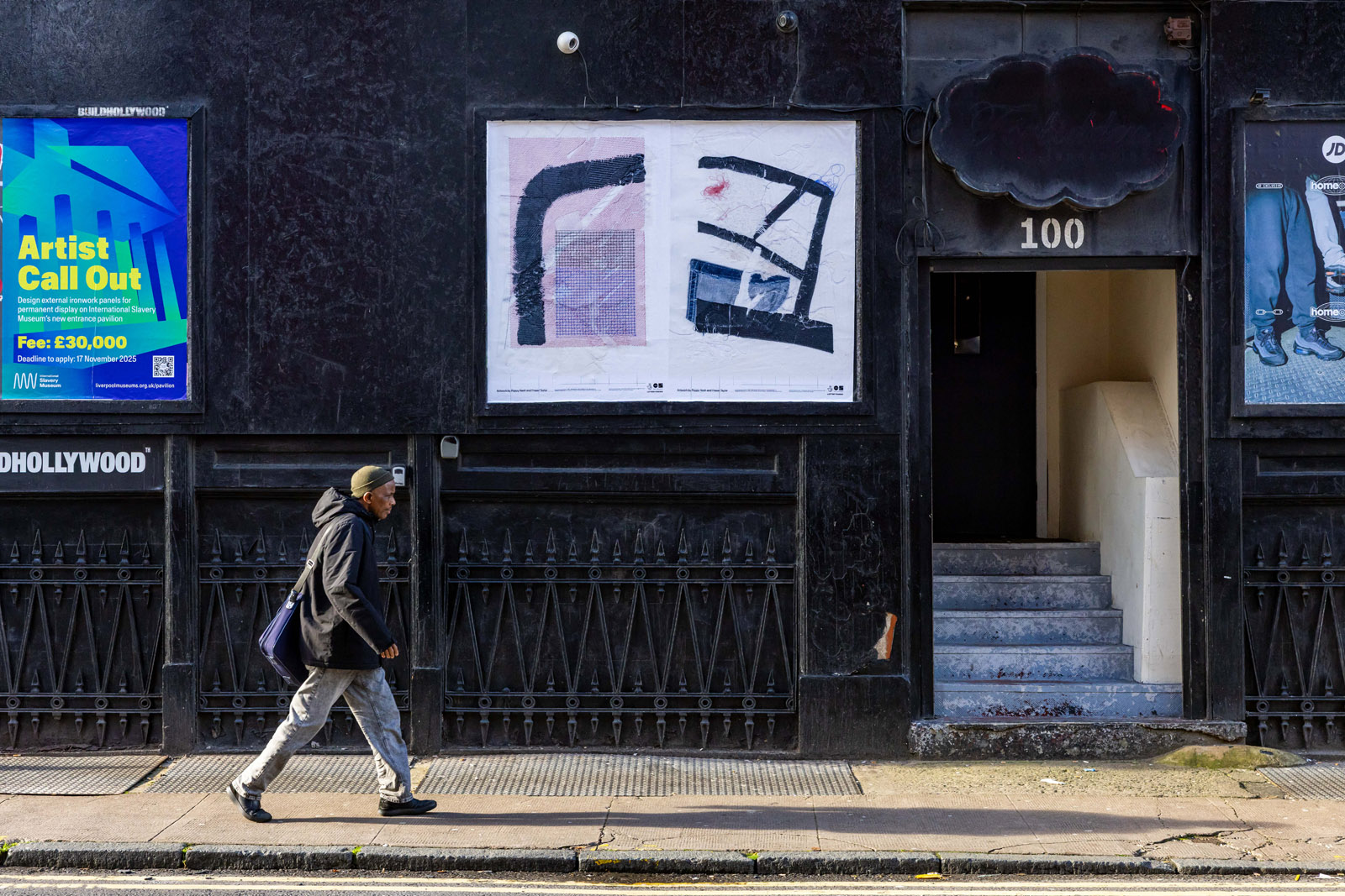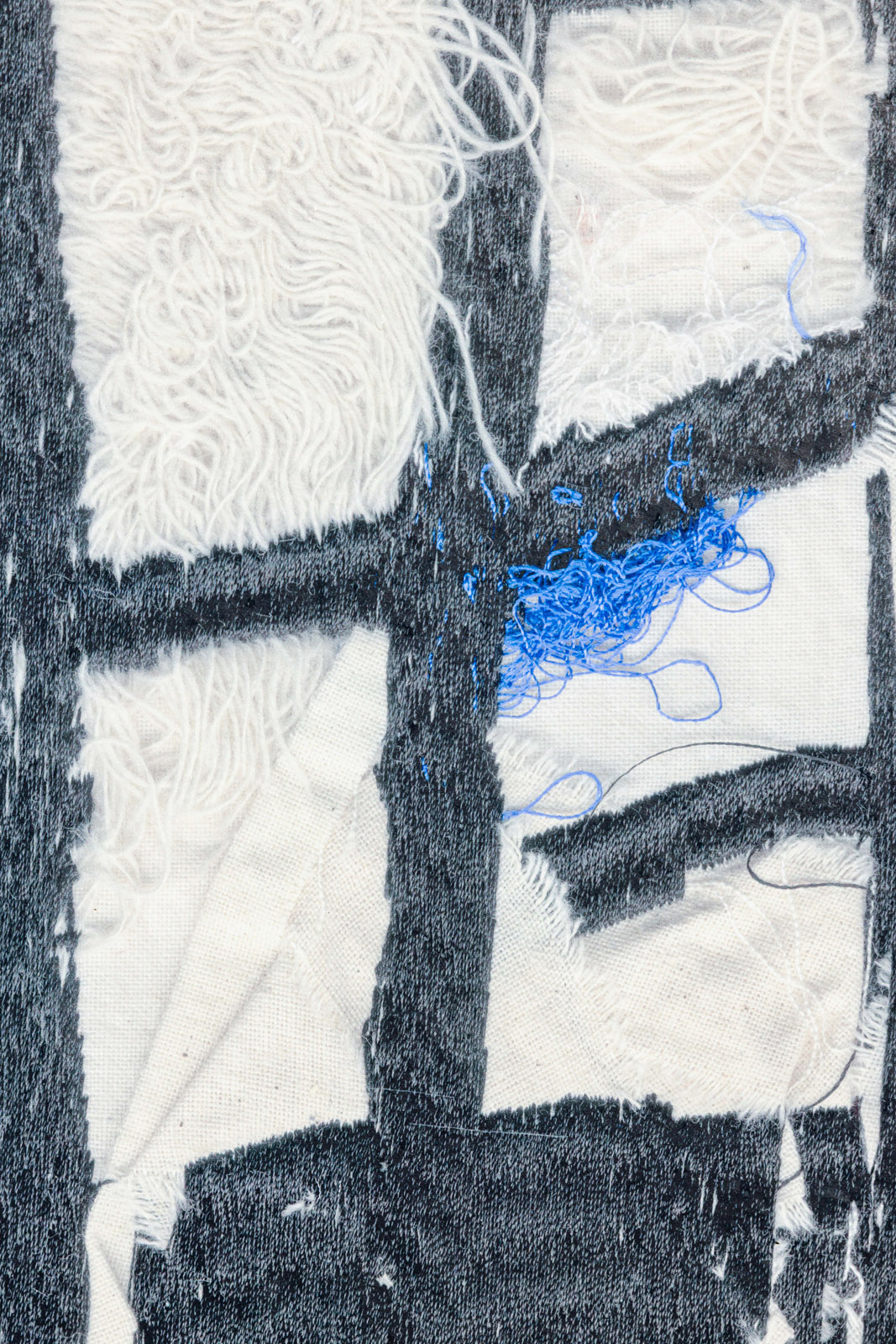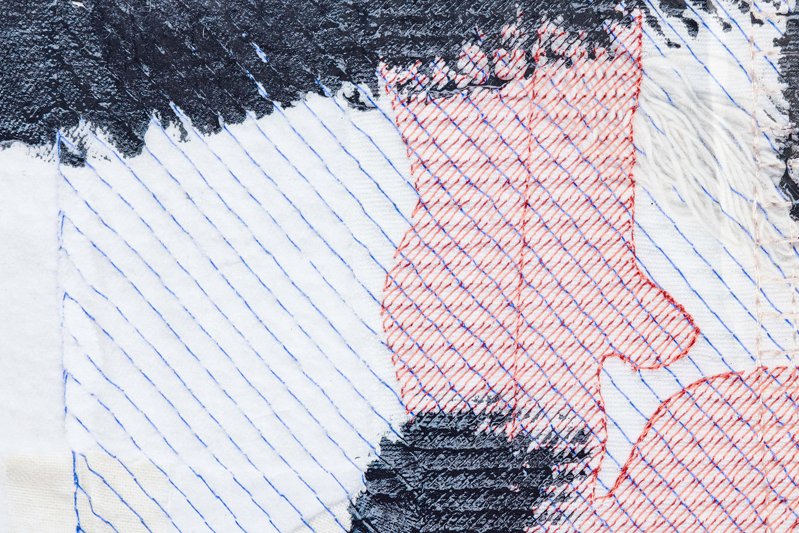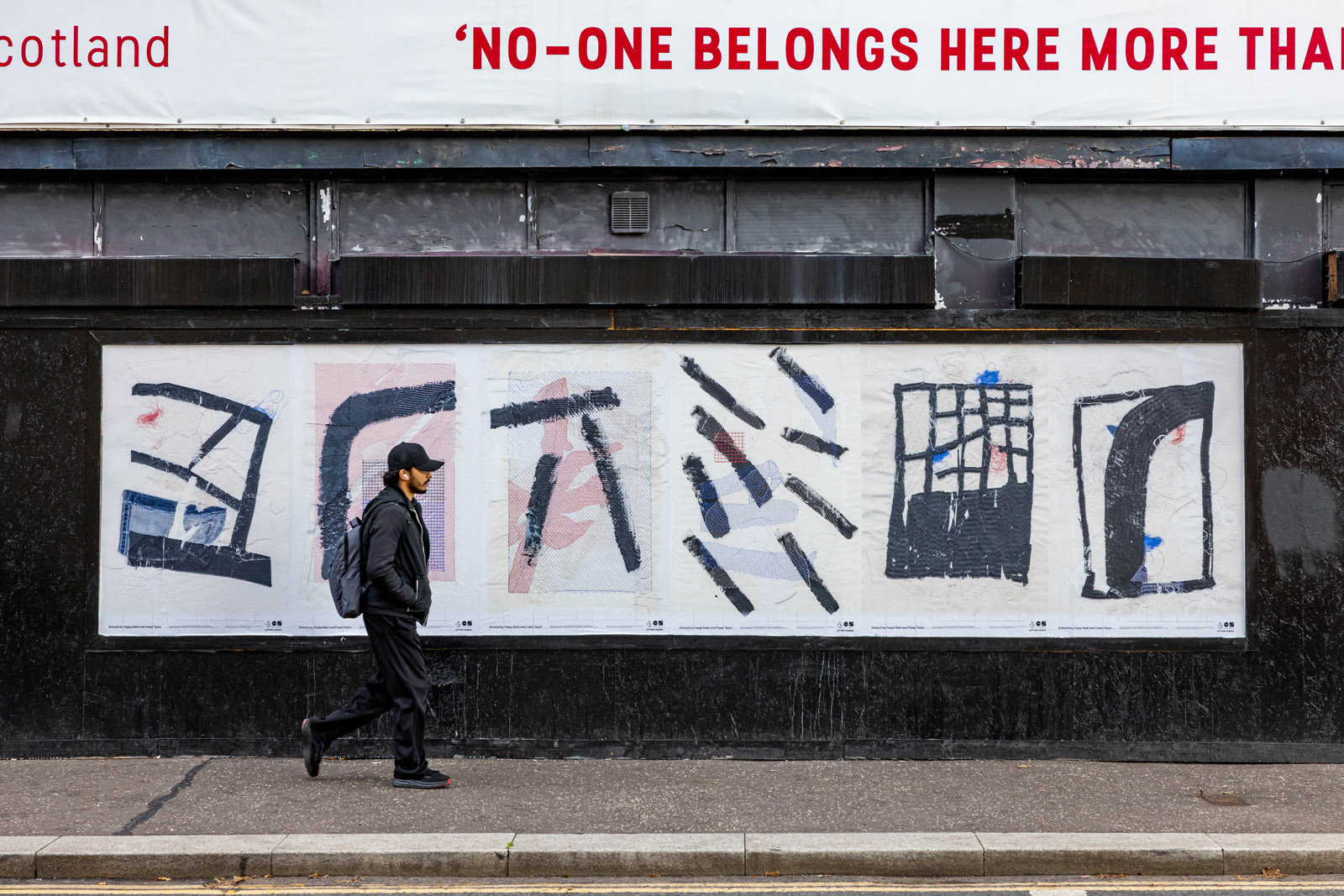 JACK ARTS Scotland partnered with Nash and Taylor to take their new collaborative works to our sites across Edinburgh and Glasgow, ahead of their parallel solo exhibitions SEE / AND KNOW BOTH SIDES OF THE QUESTION and Unlikely Architectures at Patriothall Gallery in Edinburgh. Combining Taylor’s distinctive black lines with Nash’s textural embroidery the pair have overlaid their work to mimic the process of layering within screen printing. This series of nine new collaborative works bridge the intersections of their practices, bringing graphic marks and soft textures to public sites across the two cities.