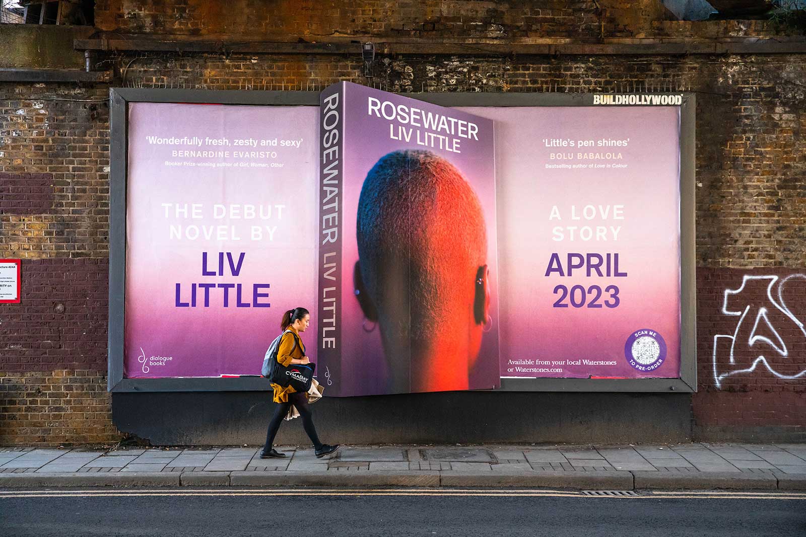 Given how well-loved Little is, the street-side launch for Rosewater’s cover reveal had to be special. Working with Total Media, Hachette and Little, Brown Book Group’s Dialogue Books, we created a campaign that combined a bespoke creative billboard with ambassadors handing out fragrant rosewater to passers-by – a perfect way to unveil Rosewater’s visual essence straight from Little’s native South London. The campaign generated huge coverage across social media and in industry press, being shared by author, publishers and Little’s huge creative professional network alike.