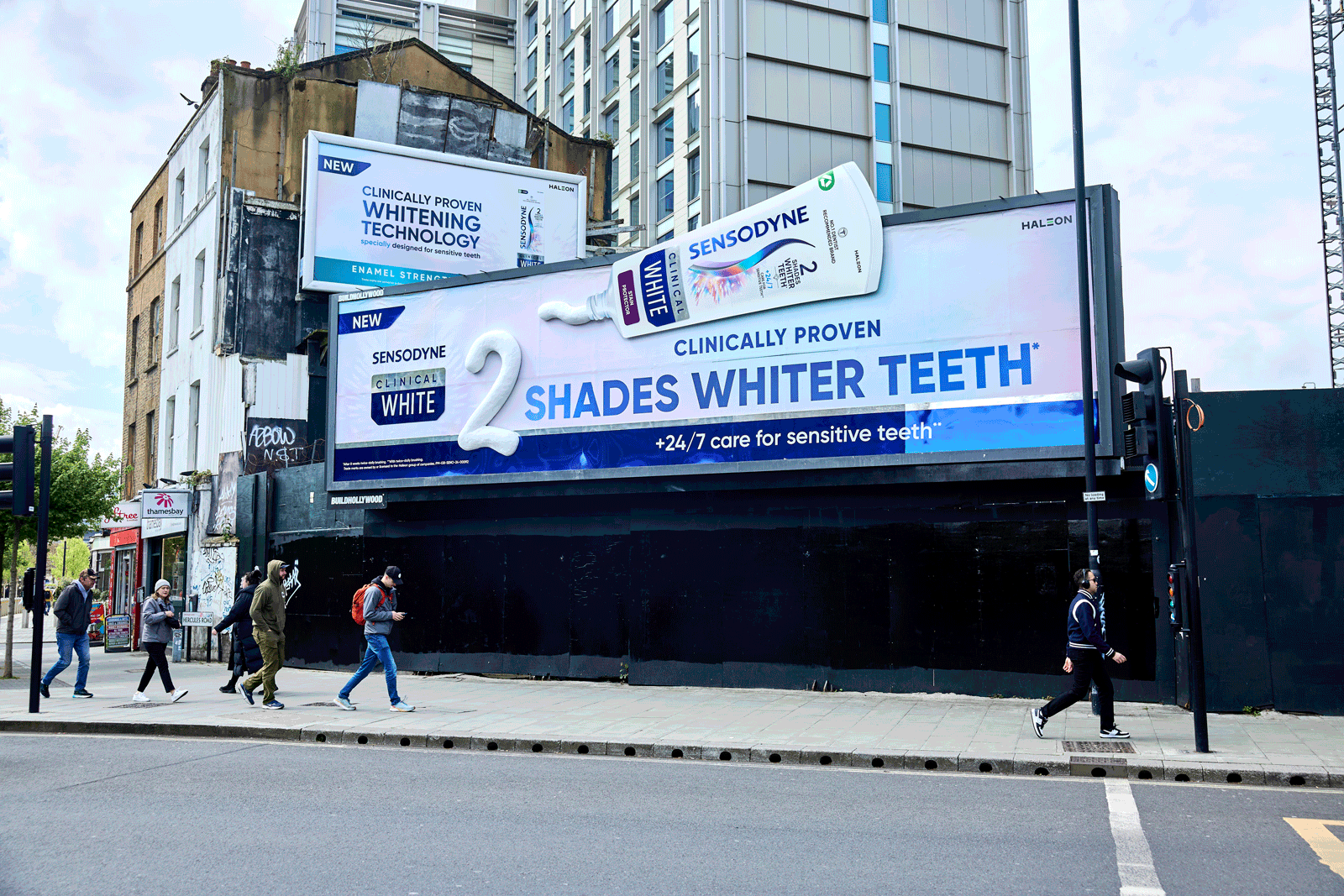 For a toothpaste that (weirdly, only) 9/10 dentists recommend, we believe it deserved a 10/10 build. JACK worked with Energy Marketing Group on a creative billboard across our London Westminster Street takeover site. Our in-house creative studio team built a pretty big tube of toothpaste, for some pretty big teeth, that spilt out, not only beyond the frame, but also the number “2”; reading “2 SHADES WHITER TEETH”.
