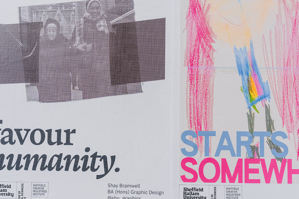 Creating space for artists to share their talent and stories with communities is what we love to do. And this spring, JACK ARTS partnered with Sheffield Hallam University to fill the city with their Graphic Design students’ take on what makes an impactful street poster.