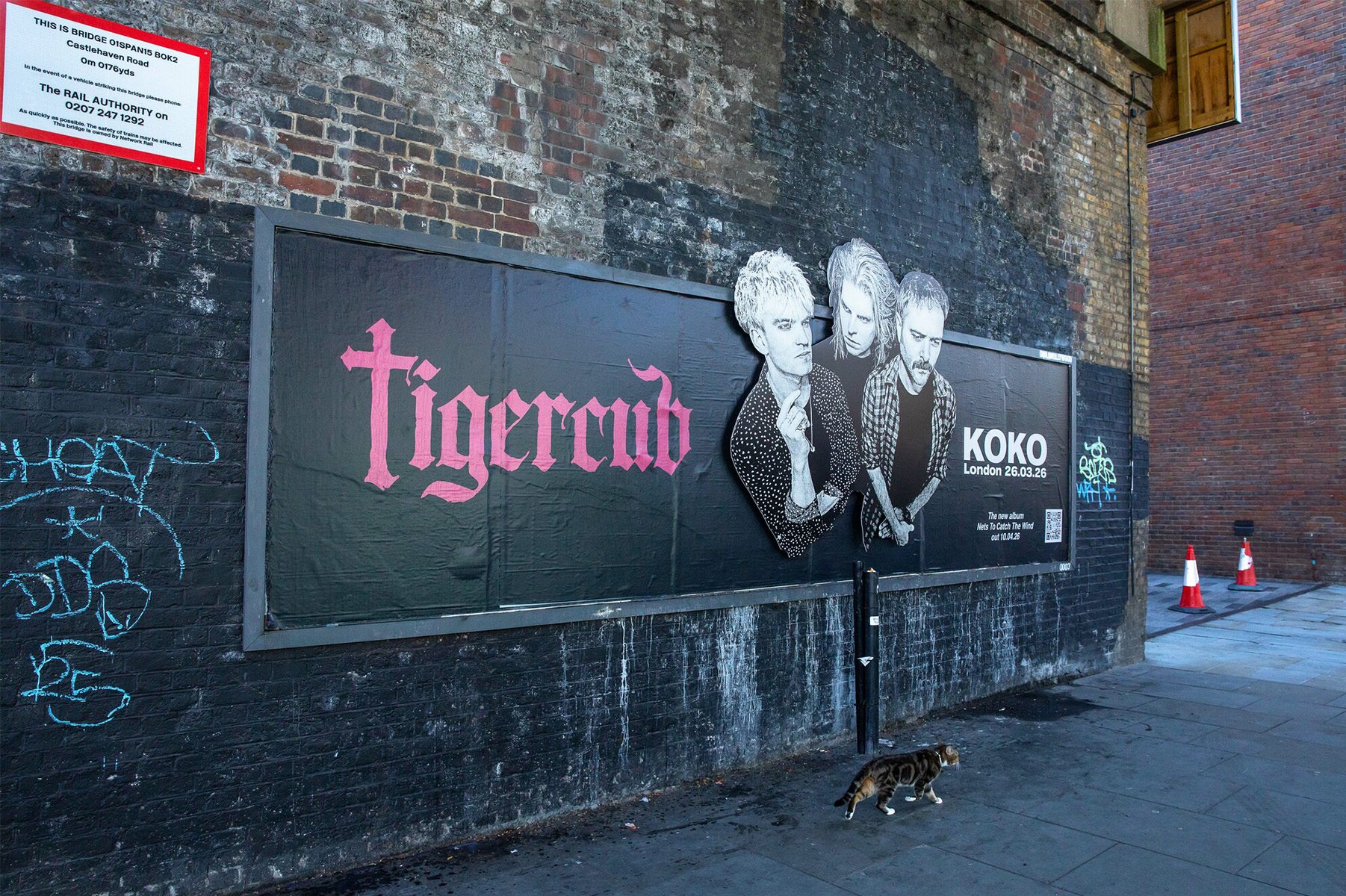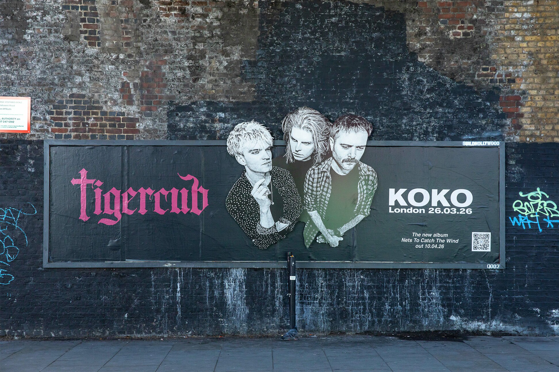 Ahead of Brighton-born band Tigercub’s KOKO debut, DIABOLICAL teamed up with Live Nation to take over Camden’s Castlehaven Road with a creative billboard that saw the trio emerging from the artwork and onto the brick beneath – turning heads and amping up excitement ahead of the show.