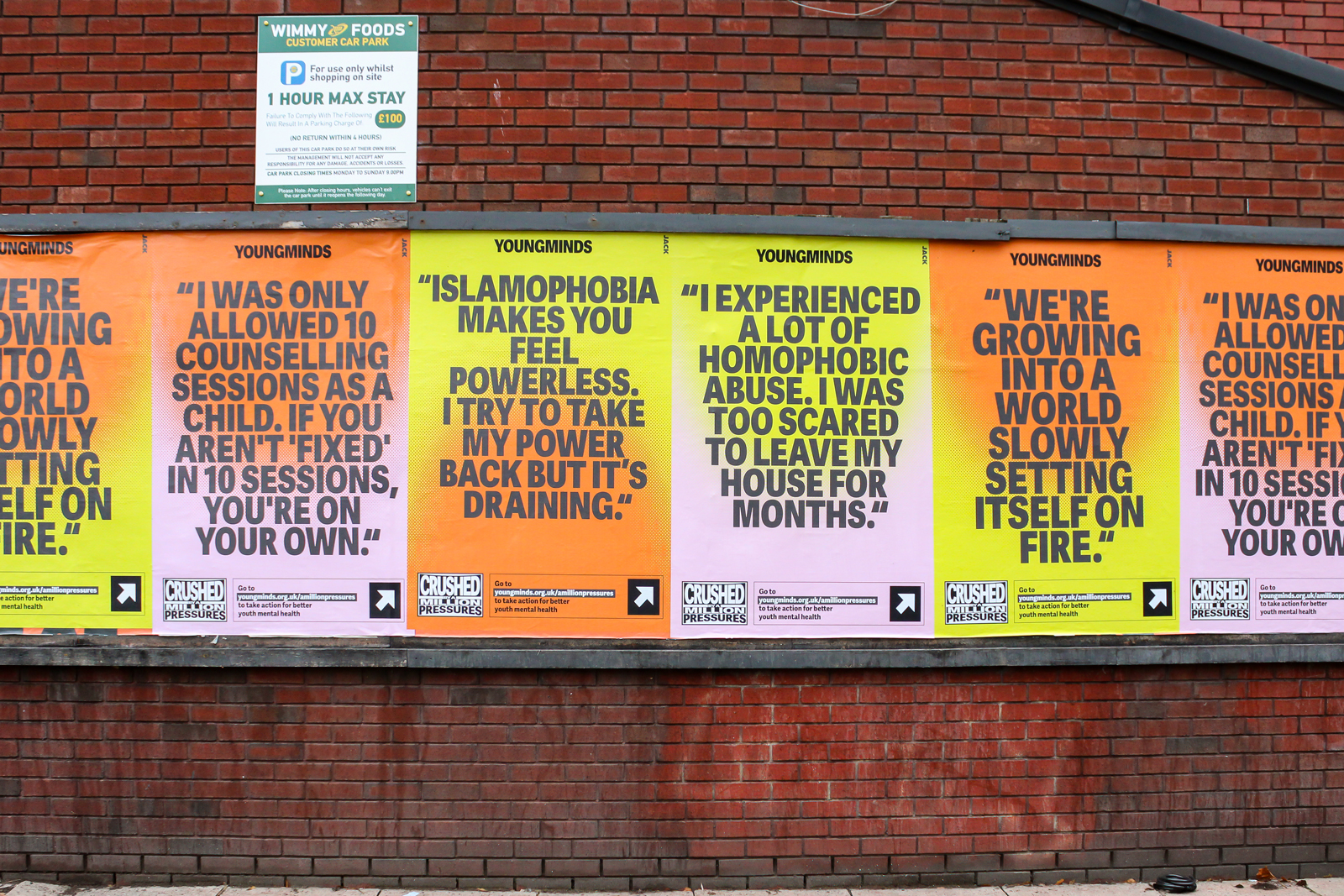 Coinciding with their installation at King’s Cross, JACK and YoungMinds plastered their call throughout Bristol, Cardiff, Edinburgh, London and Manchester. Quotes from over 1,000 young people, juxtaposed against vibrant gradients, detailed single, yet shared, experiences in everyday life on feeling crushed and weighed down. The billboards were seen far and wide throughout our cities, asking passersby to take action for better youth mental health. “The youth mental health crisis isn’t caused by one thing. It’s a million tiny things that add up.”